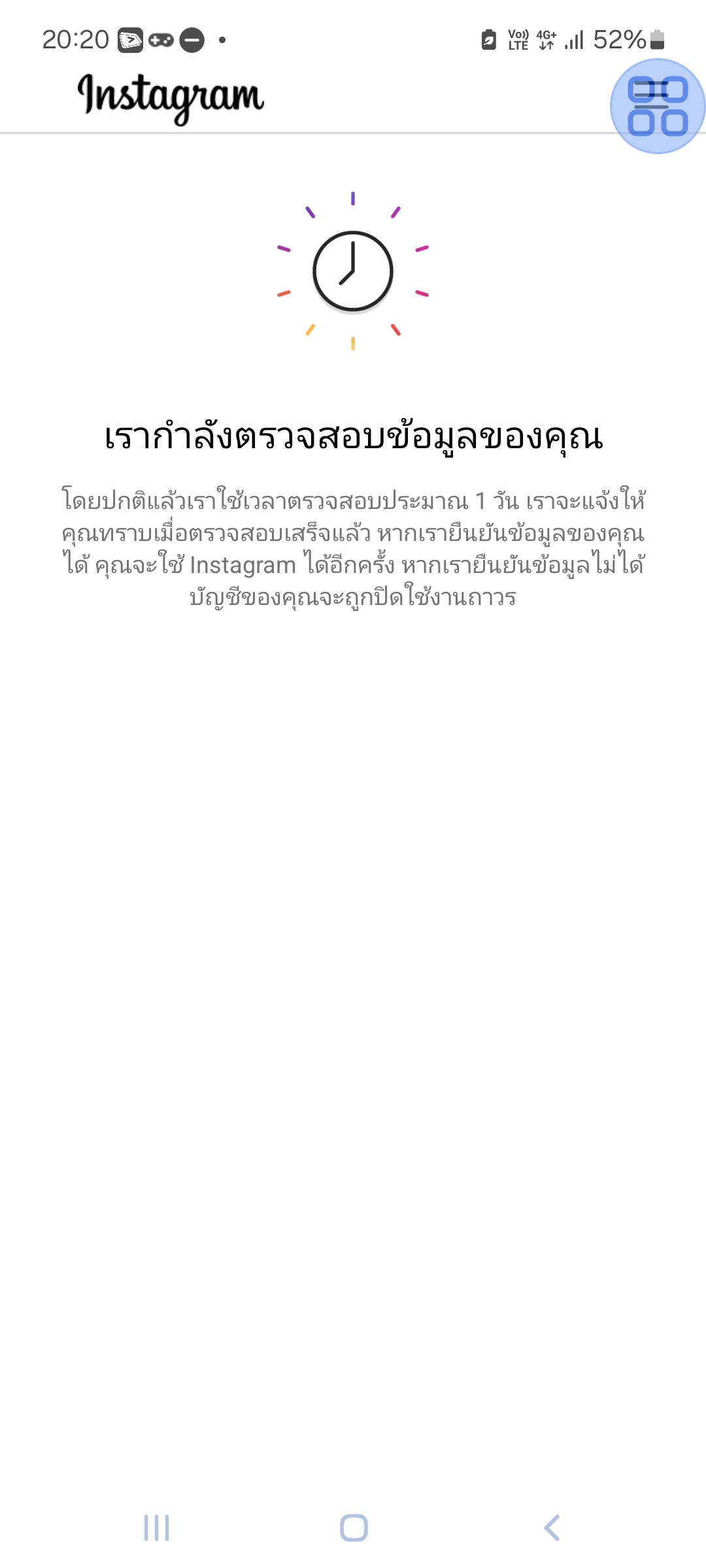 ไอจีผมเป็นไรไม่รู้มันขึ้นให้รอ24ชั่วโมงเเต่ตอนนี้ผ่านมา4วันเเล้วยังไม่ได้คืนเลยเป็นเพราะอะไรหรอครับ?