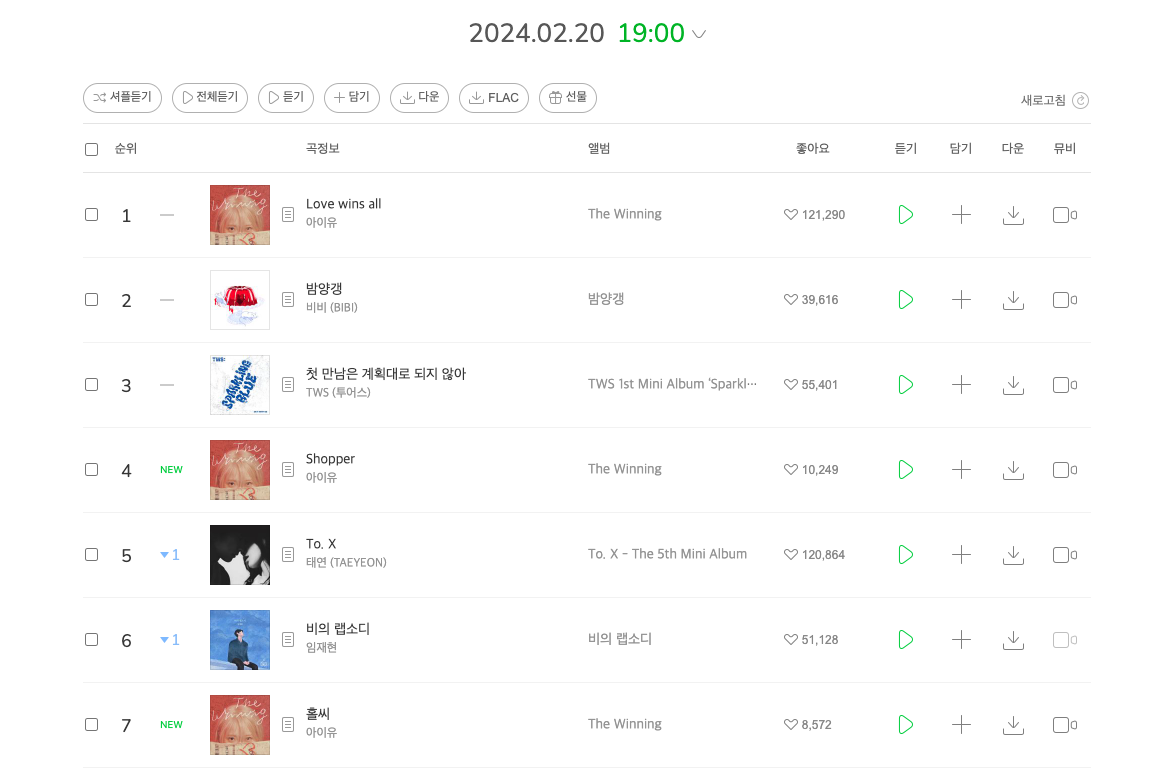 IU The Winning อันดับชาร์ตเพลงใน Album หลังจากผ่านชั่วโมงแรก