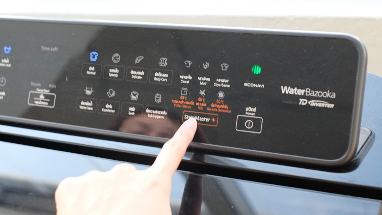 แต่ถ้ายังกลัวสะอาดไม่พอยังมีโหมดที่ชื่อว่า Stain master+ เพื่อซักคราบเหงื่อโคลนซอสและที่แอดวานซ์กว่านั้นยังมีฟังก์ชันน้ำร้อนสำหรับซักผ้าที่เปื้อนคราบมันคราบบนปกเสื้อหรือแม้กระทั่งขจัดแบคทีเรียได้อย่างหมดจด