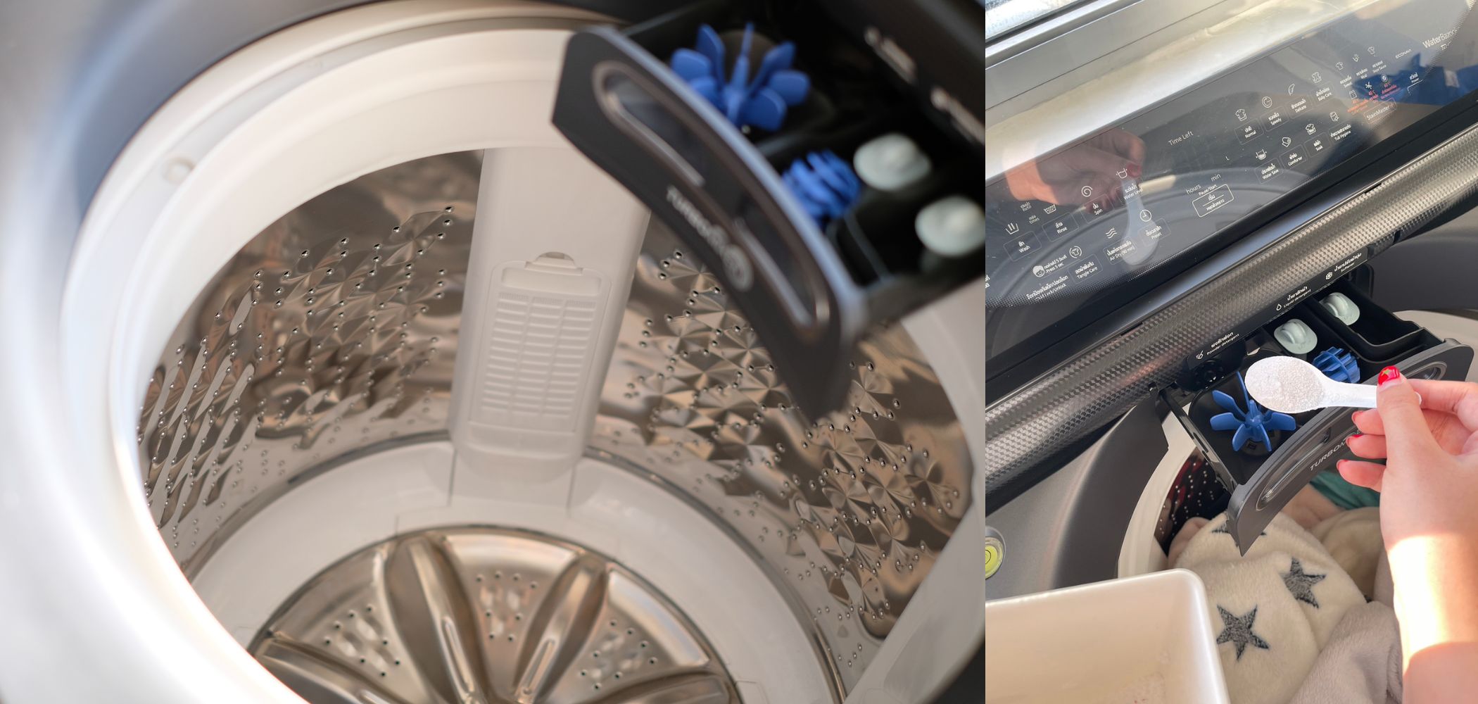 และปัญหาที่ทุกบ้านต้องเจอคือคราบผงซักฟอกหรือน้ำยาซักผ้าที่ทิ้งคราบตกค้างบนเสื้อเพราะละลายไม่หมดแต่ตัวนี้นางมีช่องใส่ผงซักฟองที่มีหลายใบพัดช่วยตีผงซักฟอกได้ดีไม่ต้องกลัวจะทิ้งคราบอีกต่อไป