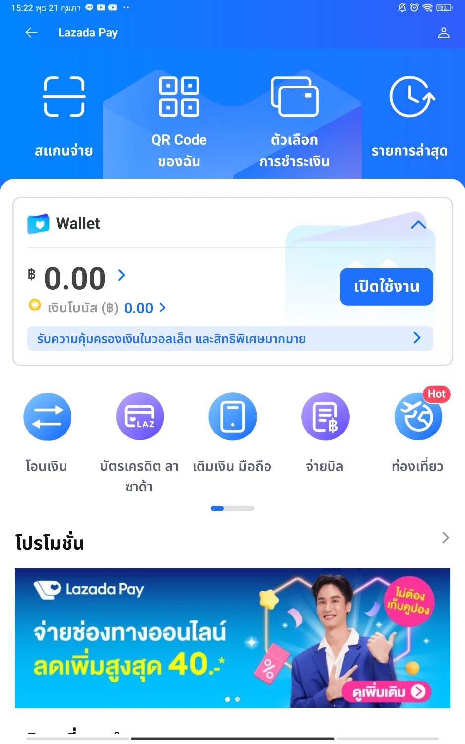สอบถามเกี่ยวกับการเปิดใช้lazadaวอลเล็ตหน่อยครับ
