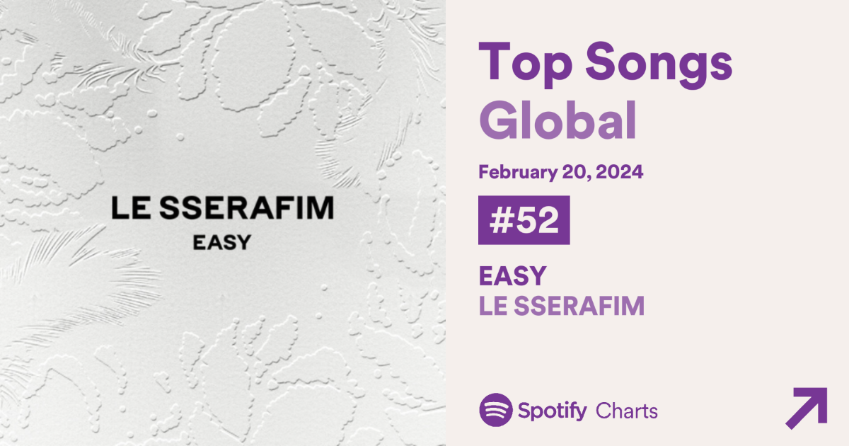 LE SSERAFIM (르세라핌), EASY. ขึ้นอันดับเข้าสู่ top100 บนชาร์ต Spotify Global Daily ได้สำเร็จ
