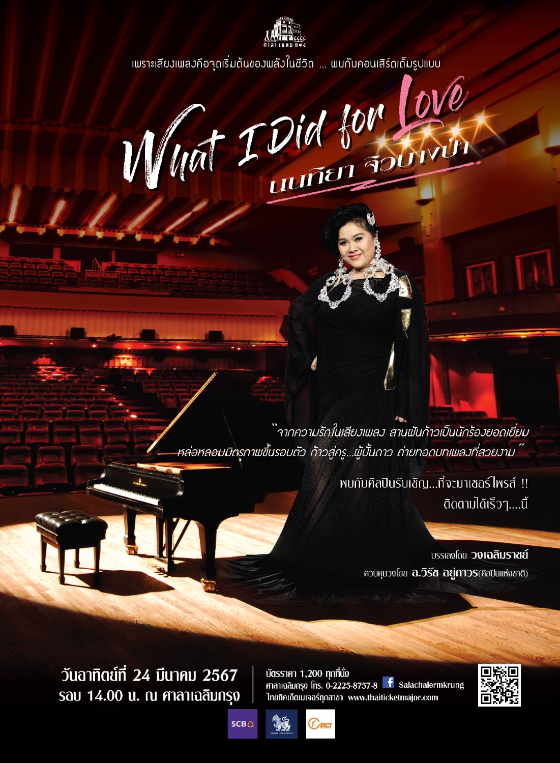 เพราะเสียงเพลงคือจุดเริ่มต้นของพลังในชีวิต เจี๊ยบ นนทิยา จิวบางป่า เตรียมคว้าไมค์ขึ้นเวทีศาลาเฉลิมกรุงในคอนเสิร์ตเดี่ยวเต็มรูปแบบ “What I Did for Love” นนทิยา จิวบางป่า วันอาทิตย์ที่ 24 มีนาคม 2567 รอบ 14.00 น. ณ ศาลาเฉลิมกรุง พบกับศิลปินรับเชิญ...ที่จะมาเซอร์ไพร์ส!! ติดตามได้เร็วๆ นี้ บรรเลงโดยวง Big Band เฉลิมราชย์ ควบคุมวงโดย อ.วิรัช อยู่ถาวร(ศิลปินแห่งชาติ)