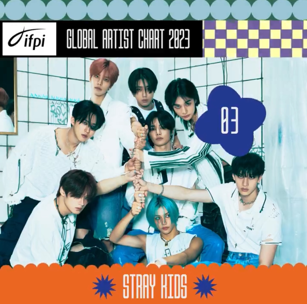 Stray Kids อยู่ในอันดับที่ 3 ศิลปินระดับโลกประจำปี 2023 <Global Artist Chart> จากการจัดอันดับโดย IFPI