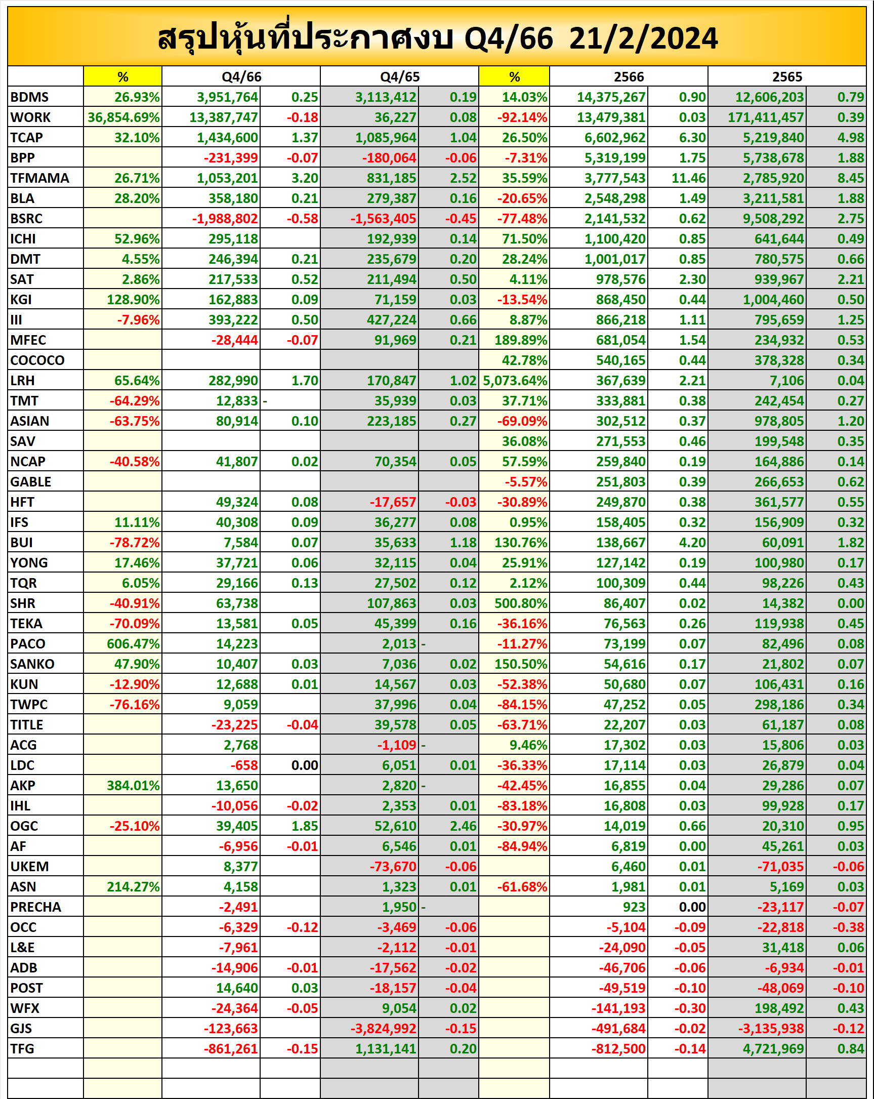 ⭐⭐สรุปหุ้นที่ประกาศงบ Q4/66