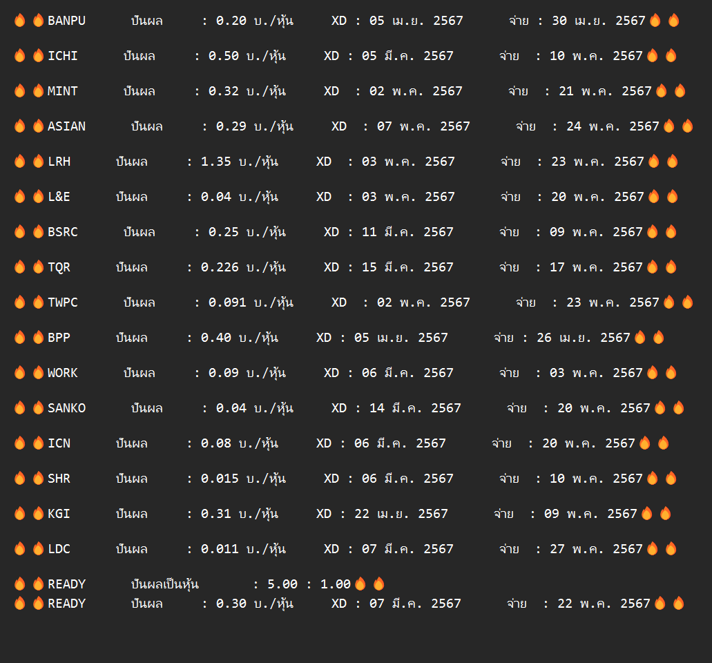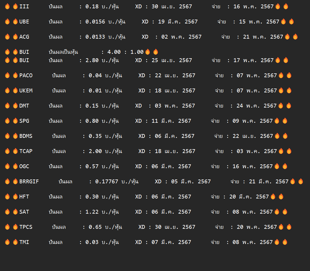 🔥🔥CPALL ปันผล : 1.00 บ./หุ้น XD : 07 พ.ค. 2567 จ่าย : 24 พ.ค. 2567🔥🔥