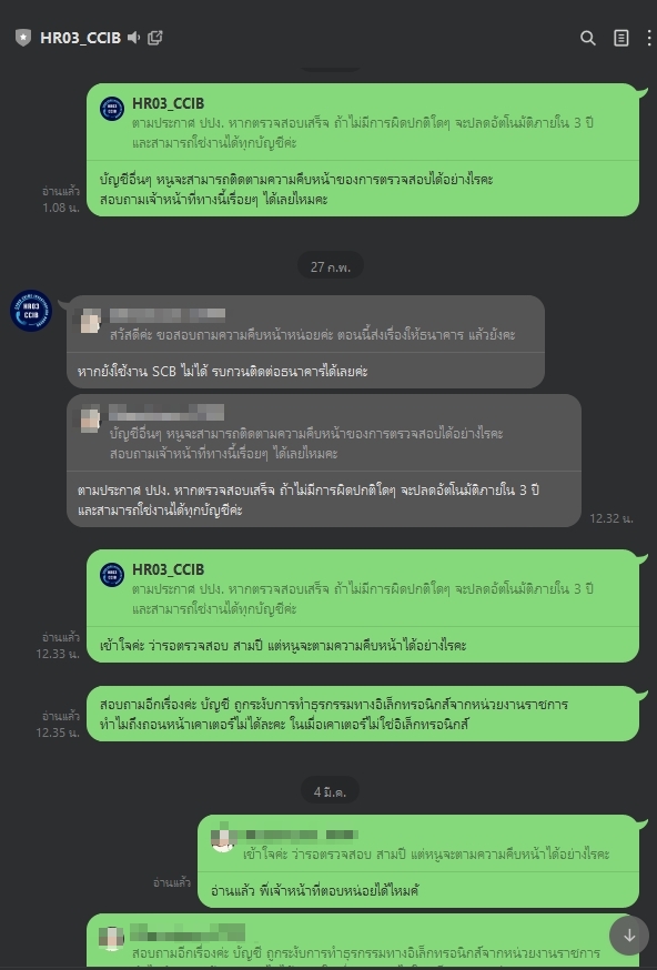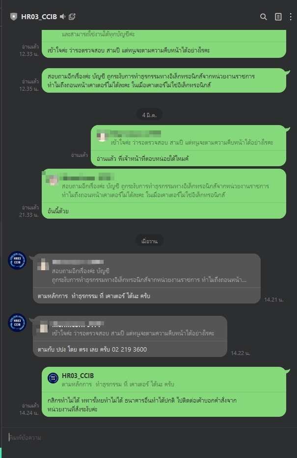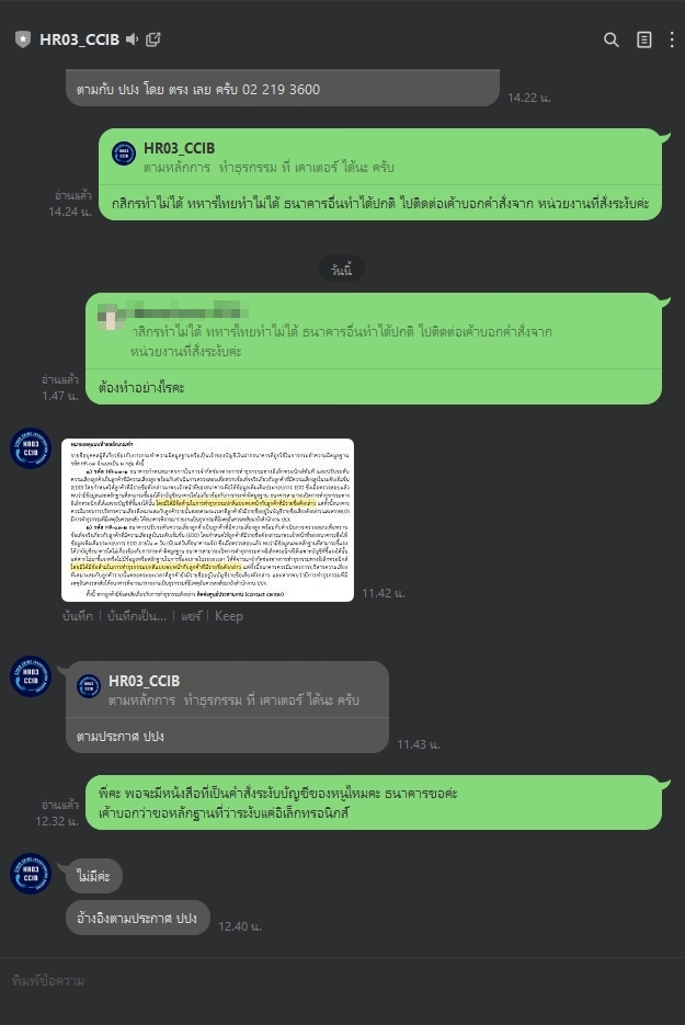 และสอบถามไป เจ้าหน้าที่ยังไม่อ่าน