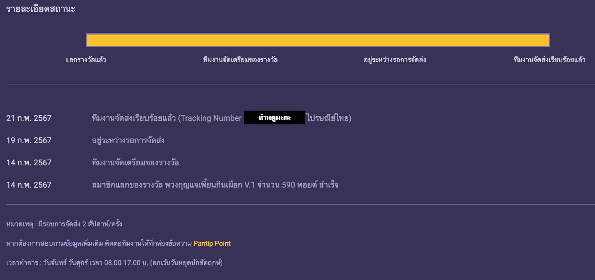 วิธีการก็คือเราสะสม Point Pantip ให้ได้ตามที่กำหนดจากตัวพวงกุญแจก็จะเป็น 590 Point Pantip เราแลกมาสองตัว ก็จะใช้ 1,180 Point Pantip เราก็สะสมให้มันครบตามที่เราอยากได้แล้วก็กดแลกของรางวัลเพราะเราอยากให้เค้าส่งมาครั้งเดียวเค้าจะได้ไม่ต้องเสียเงินค่าส่งอะไร 2 รอบด้วย อันที่เราไปแลกมาก็คือ พวงกุญแจเพี้ยนกินเผือก V.1 และ V.2 แลกเมื่อวันที่ 14 ก.พ. 2567 ทางทีมงานจัดส่งเรียบร้อยแล้ววันที่ 21 ก.พ. 2567