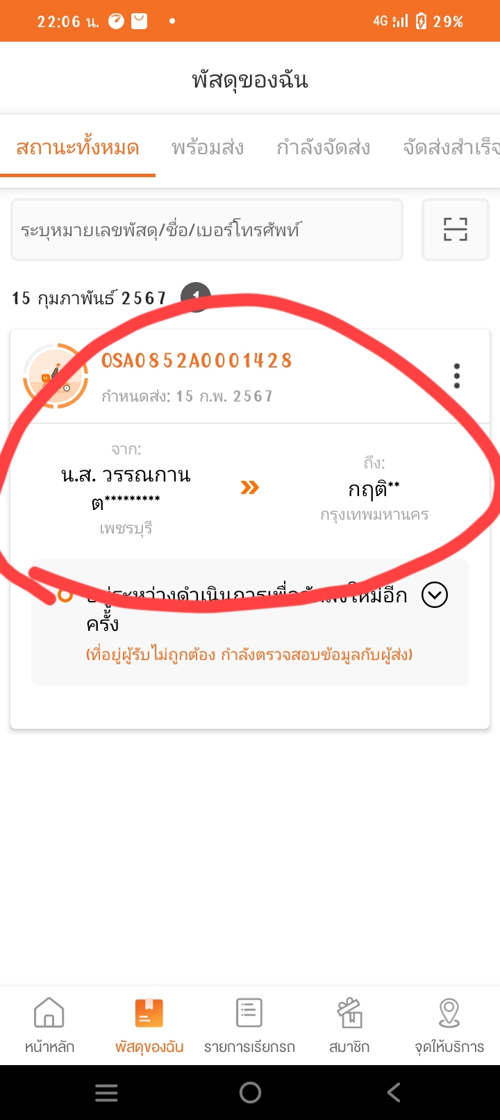 สามารถเข้ารับพัสดุเองได้ไหม พอดีต้องการใช้งานของด่วนมาก ของถึงสาขาปลางทางแล้ว