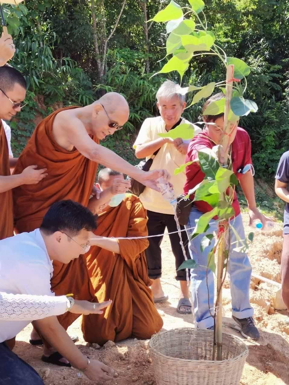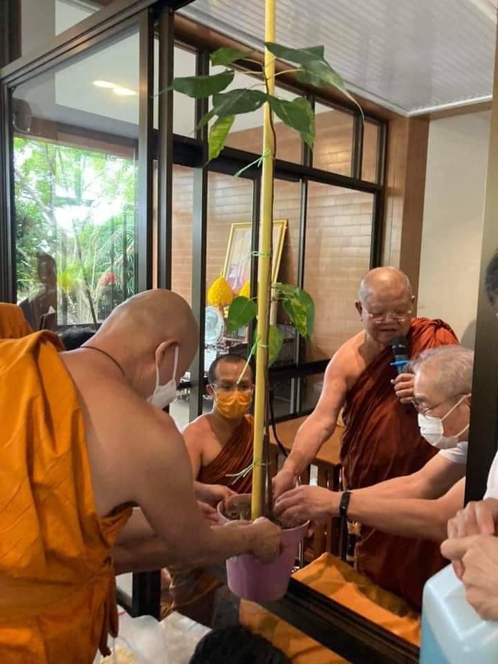 ปลายเดือนธันวาคม พ.ศ. 2560 อ.วิกรานต์ แซ่ลี้ (ประธานชมรมสู่ร่มโพธิญาณ) พร้อมด้วยคุณแสบ (น้องชายของ อ.วิกรานต์) ได้เดินทางไป จ.ตราด เพื่อจะไปทำธุระที่เกาะช้าง จ.ตราด ในทุกๆ ครั้ง ที่มาเกาะช้าง อ.วิกรานต์ และน้องชายจะต้องแวะเข้ากราบขอพรครูบาอาจารย์ หลวงพ่อสำอางค์ จิรเสฎโฐ วัดเขาสมิง จ.ตราด อยู่เป็นประจำ ในครั้งนี้ก็เช่นกันได้พูดคุยสนทนาธรรม และสอบถามเรื่องสุขภาพของหลวงพ่อสำอางค์ ว่าช่วงนี้หลวงพ่อเป็นอย่างไรบ้าง และ อ.วิกรานต์ ได้เล่าถึงนิมิตให้หลวงพ่อสำอางค์ฟังว่า " มีอยู่คืนหนึ่ง ผมได้นั่งภาวนาแล้วเห็นองค์กิมบ้อเนี่ยเนี๊ย มาบอกว่า " ให้ปลูกต้นพระศรีมหาโพธิ์ เพื่อสร้างบารมีต่ออายุหลวงพ่อสำอางค์ "