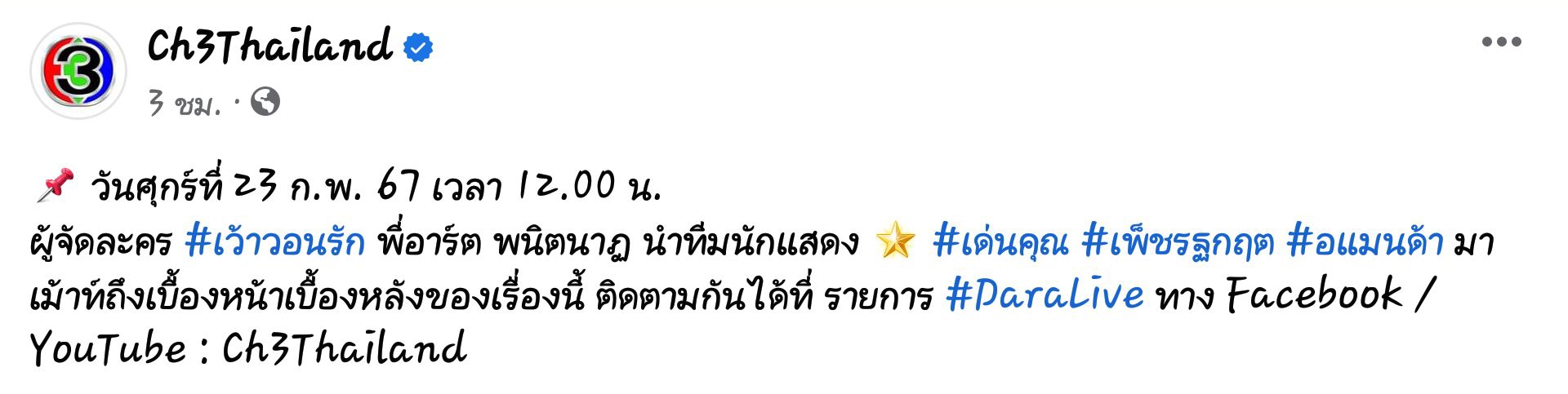 🔴 ทาง Facebook / TikTok / YouTube : Ch3Thailand