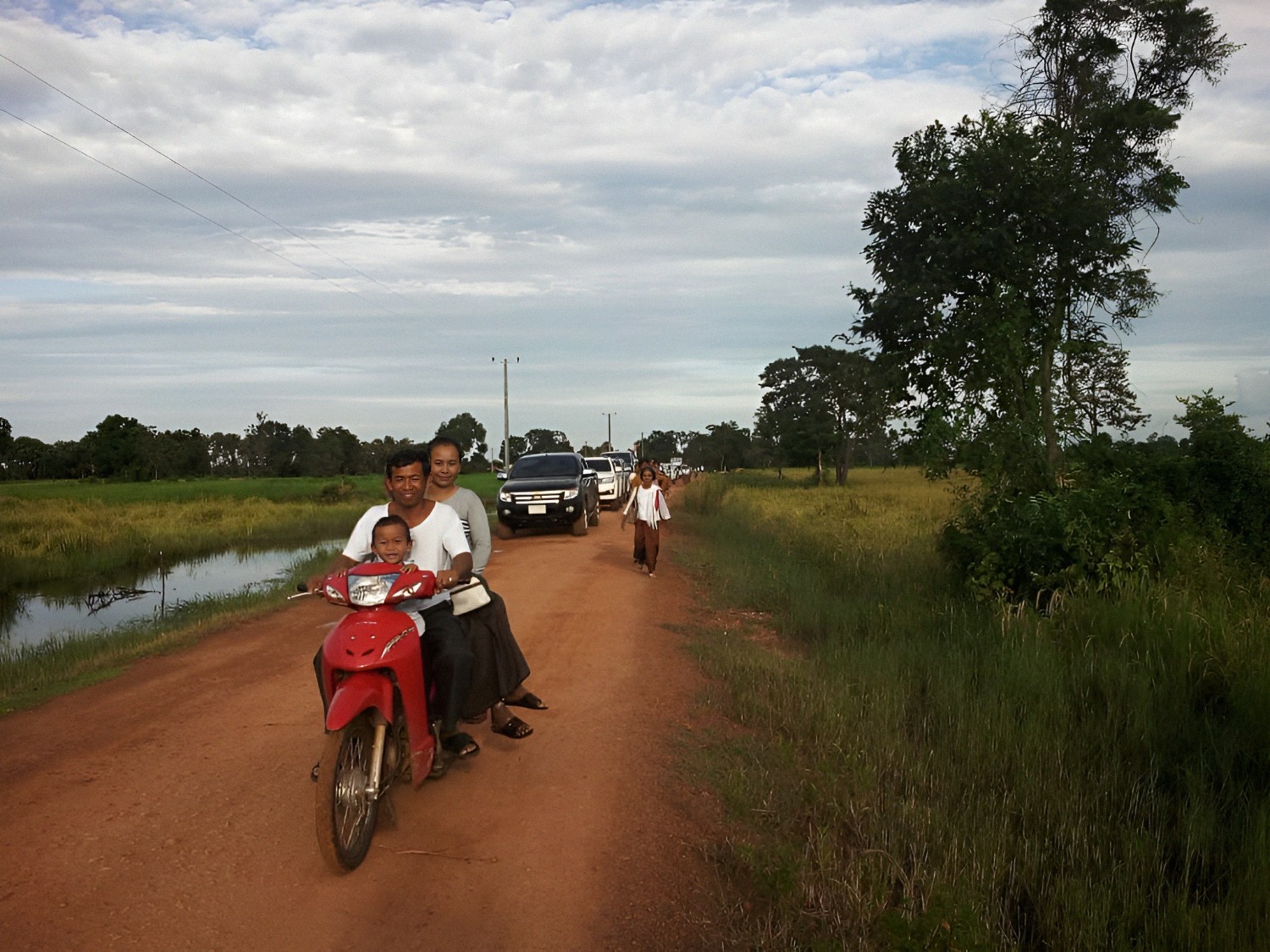เลยตลาดโอวร็อธเกราะออกมาจะเห็นไร่สวนได้เยอะหน่อย สภาพภูมิประเทศดูรกไม่โล่งเตียนแบบเมื่อก่อนแล้ว แต่ถนนนี่สิ วันนี้มันเป็นถนนลูกรังซึ่งโรยทรายกับหินภูเขาทับหน้า ผิวถนนเป็นพื้นหินขรุขระแบบนี้จึงต้องนั่งกระแทกกระทั้นหัวสั่นหัวคลอนไปตลอดทาง