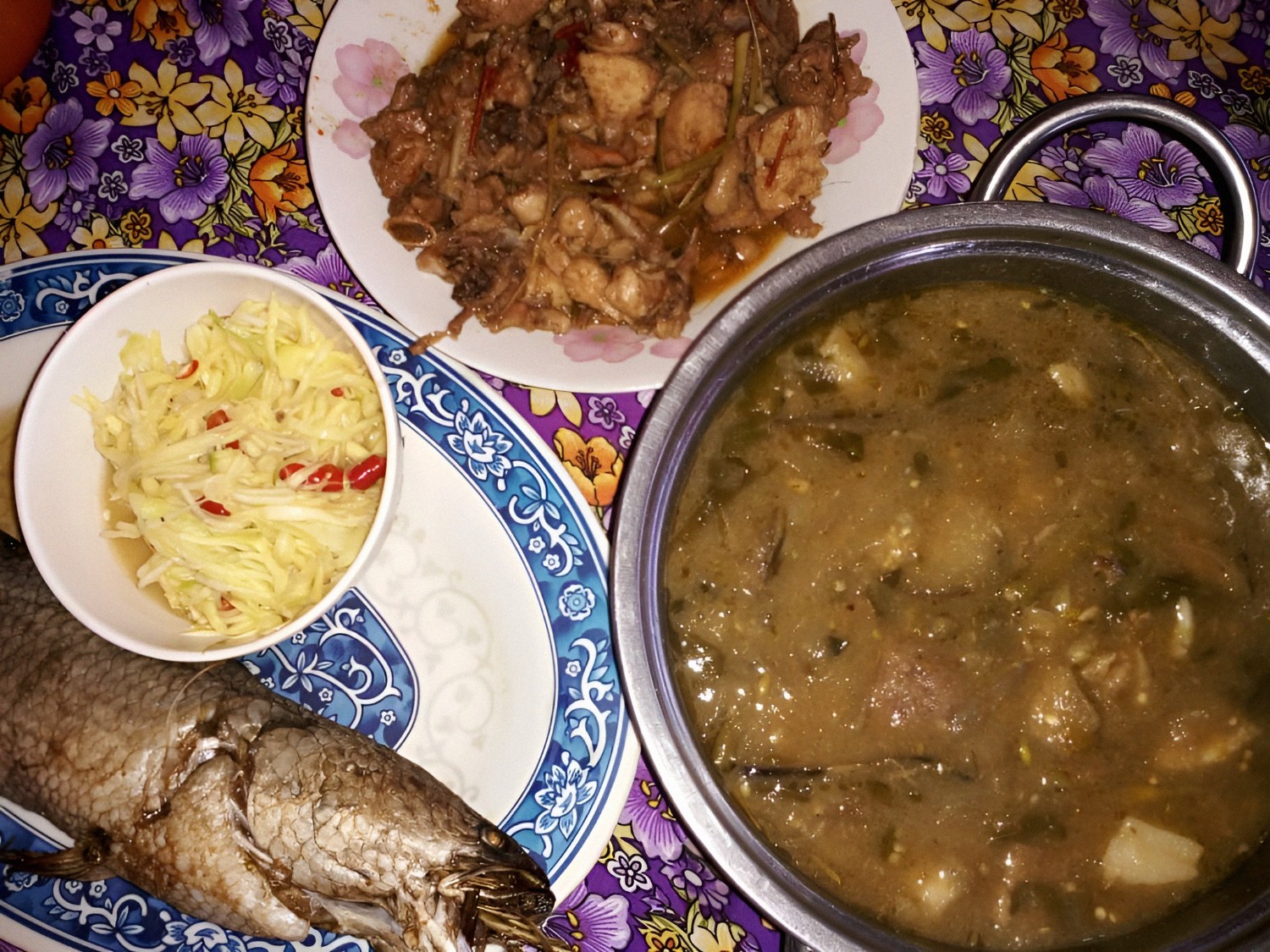 เลยซ็อมโลตออกมาพื้นที่แถบนี้คือภูเขาที่คลุมด้วยหญ้าสีเขียว จากผืนป่าถูกทำลายจนหมดไม่ต่างจากทางจังหวัดไปลินเท่าไร สองข้างทางเห็นมีสวนพริกไทยเยอะอยู่เหมือนกัน และตามภูเขาหญ้านั้นบางทีก็เป็นสวนลำไยที่เพิ่งปลูกอยู่บ้าง แต่ส่วนใหญ่จะว่างเปล่ามีแต่หญ้าปกคลุมนั่นแหละ จะว่าสวยมันก็สวยนะ แต่ก็อดใจหายไม่ได้เหมือนกันเมื่อนึกถึงป่าที่หายไป