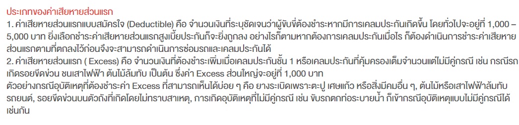 ประกันชั้น 1 มีค่า Excess ค่า Deductible