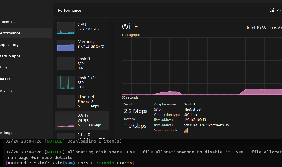 เลยจัดการ์ด WIFI PCIE ASUS PCE-AX3000 ชิป intel AX200 มาใช้คู่กัน เครื่องที่ใช้ทดสอบอยู่ชั้นสอง ตัว router อยู่ชั้น 1