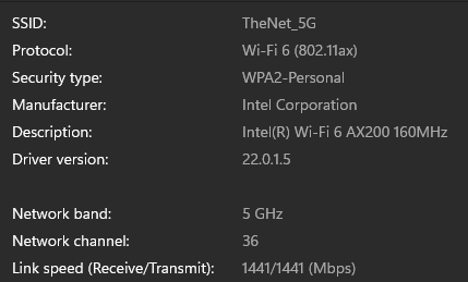 ผลทดสอบตามภาพ ต่อ WIFI 5G 160MHz ได้ bandwidth 1441/1441 Mbps