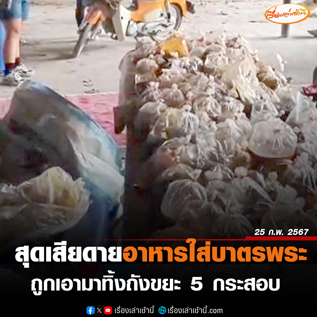 เสียดาย...อาหารญาติโยมใส่บาตรพระ ถูกทิ้งถังขยะหน้าร้านรับซื้อของเก่า 5 กระสอบ . ผู้ใช้เฟซบุ๊กรายหนึ่ง โพสต์ภาพพร้อมข้อความว่า "ใครเอาแกงมาทิ้งหน้าร้านลำลูกกาค้าของเก่า 5 กระสอบ ถ้าวันพระคนทำบุญเย