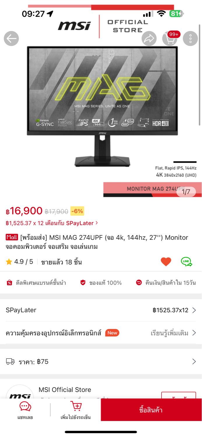 MSI MAG 274URFW มีขนาด 27 นิ้วและความละเอียดระดับ 4Kภาพคมชัดและสีสันที่สมจริงเปลี่ยนโลกมากหลังจากใช้ fullhdมานาน ดูหนังก็ภาพคมจัดเล่นเกมภาพสีสด และยังมีอัตราการรีเฟรช 144Hz ที่ทำให้ภาพเคลื่อนไหว