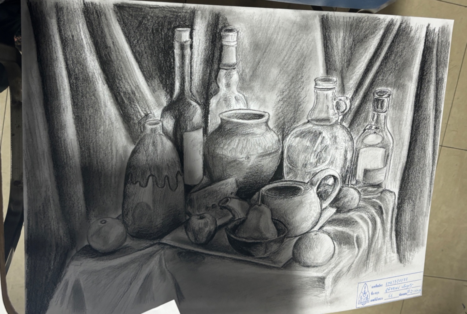 เรื่องอื่น ๆ เพิ่มเติม : - เราว่า100ปอนด์ที่เขาเอามาให้น่าจะแพงค่ะ เพราะกระดาษ ดีมาก แบบว่าดีสุดๆๆๆๆ / - เทปติดขอบกระดาษ ถ้าไม่มี/ลืม ไม่ต้องใช้ก็ได้นะคะ ไม่จำเป็นขนาดนั้น อาจารย์ไม่บังคับค่ะ หรือถ้าสะดวกเราก็เอาเลยค่ะ / - พักเที่ยงกินข้าวที่โรงอาหารหลังตึกค่ะ เดินขึ้นไปฝั่งขวา จะมีโรงอาหารคนเยอะแต่มีที่นั่งค่ะ / - เราอยู่อุดรออกจากบ้าน 6 โมงก็ทันค่ะ / - ที่ตึกมีลิฟต์ค่ะ แต่เล็กมาก ขึ้นได้ 8-9 คน เดินบันไดก็ดีค่ะ / - ระหว่างสอบอาจมีอาจารย์มาถ่ายรูปนะ แล้วเขาก็จะเดินมาดูเรา มันจะเขิน ๆ นิดนึง