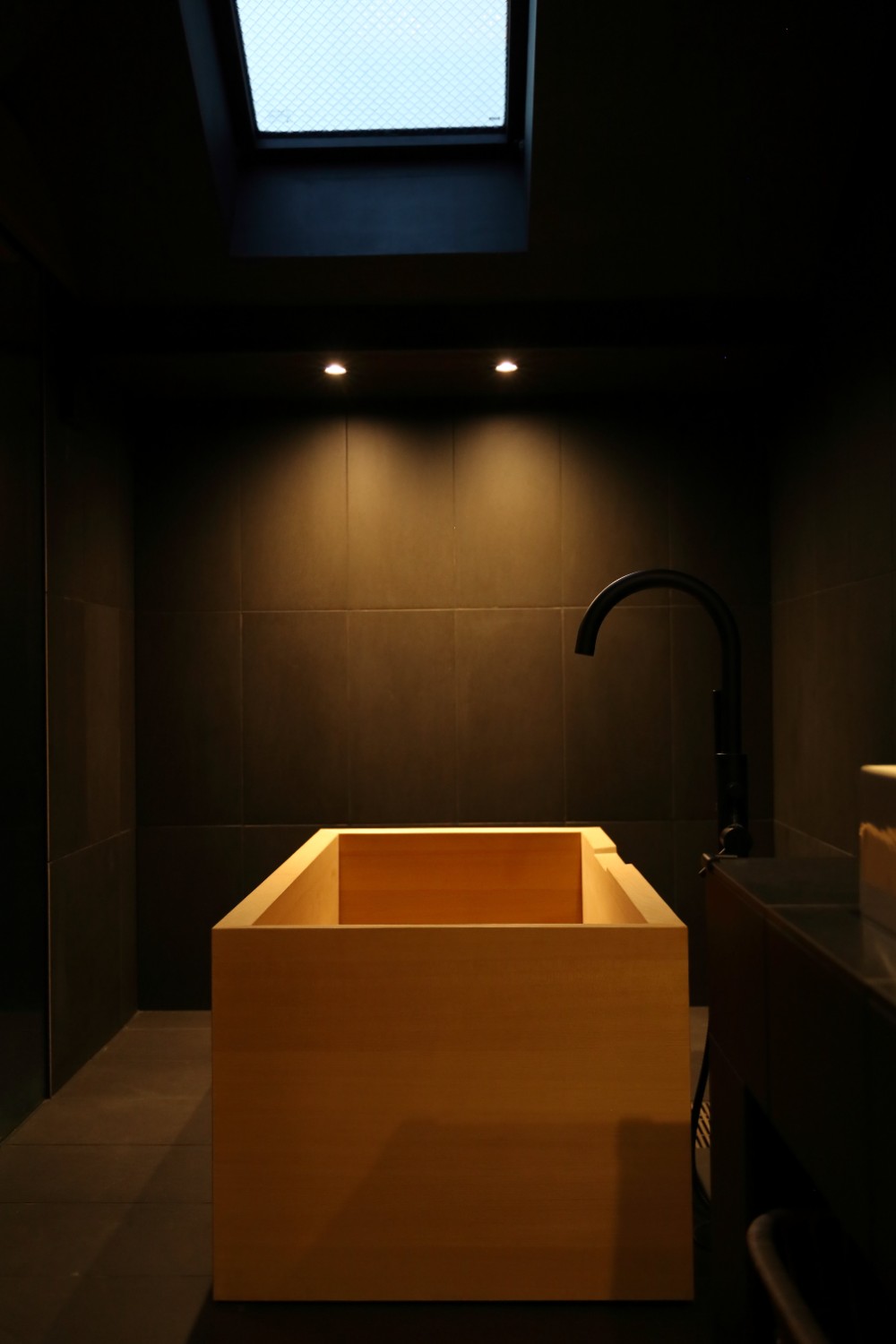 ภายในห้องน้ำมีอ่างอาบนํ้าออนเซนในตัวกึ่งเอาท์ดอร์ สามารถซึมซับบรรยากาศแช่นํ้าร้อนได้อย่างเติมที่แบบสไตล์ญี่ปุ่น