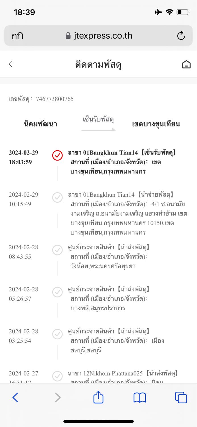ขนส่งj&tไม่อัพเดตสถานะเป็นอาทิตย์แล้ว