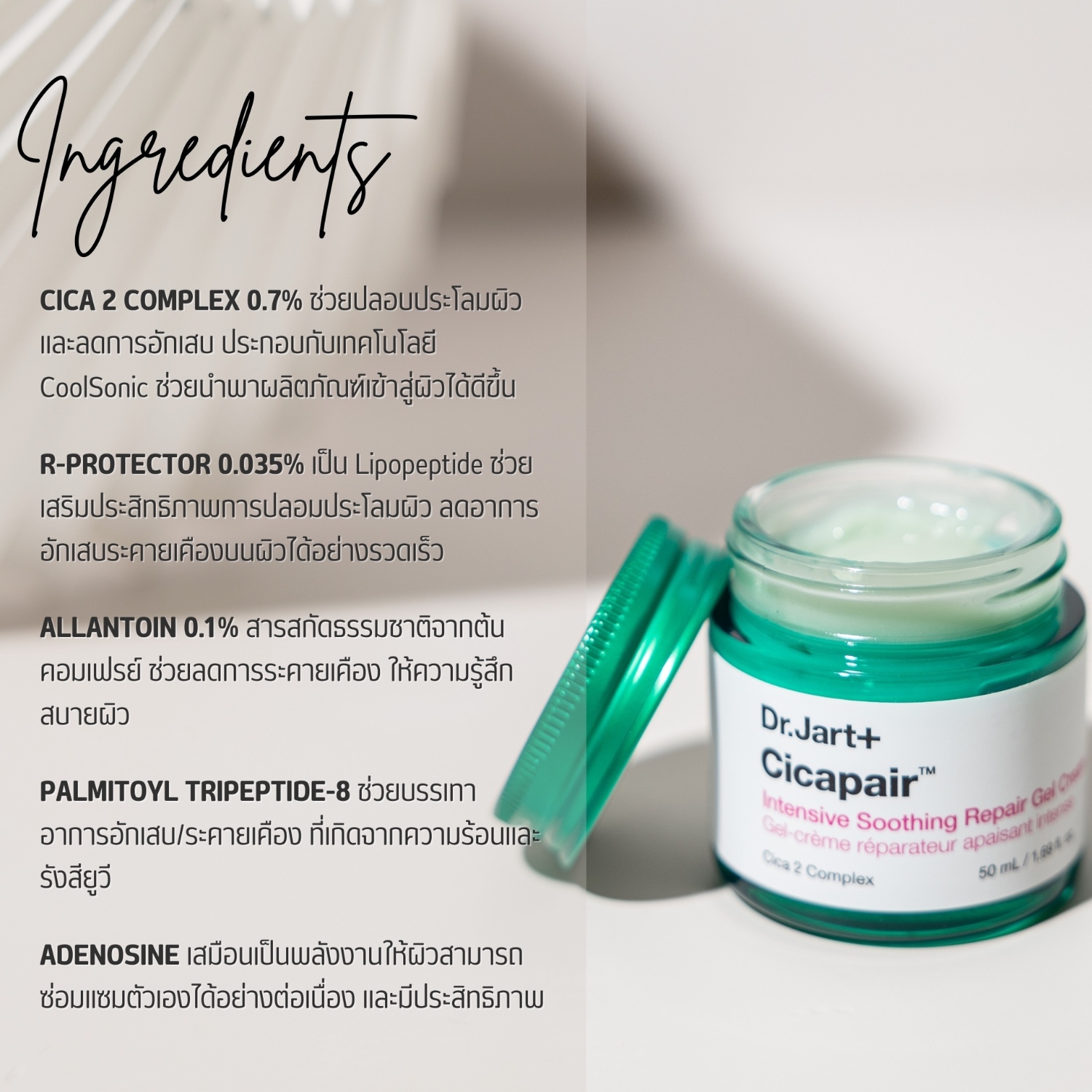 Dr.Jart+ Intensive Soothing Repair Gel Cream ก็เป็น 1 ใน 8 ผลิตภัณฑ์ของไลน์นี้ที่เราลองใช้และได้เห็นส่วนผสมแล้วอดไม่ไหวจนต้องหยิบมาเล่าให้ฟัง