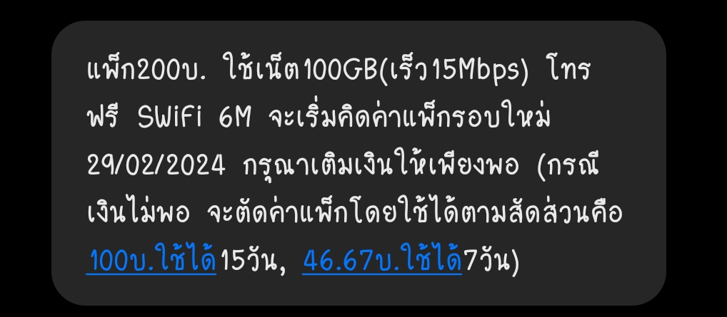 ปกติใช้แพ็กเน็ต200บาท 30วัน เดือนนี้อยู่ ๆ เปลี่ยนเป็นแพ็กเน็ต250บาทให้เรา เราไม่รู้ ก็เติม200ปกติ แต่หักตามแพ็กเกจ250บาท หักเราไป125 ใช่ได้แค่2อาทิตย์ ไม่โอเคค่ะบอกตรง ๆ เคยมีปัญหามาแล้วรอบนึงที่เติม
