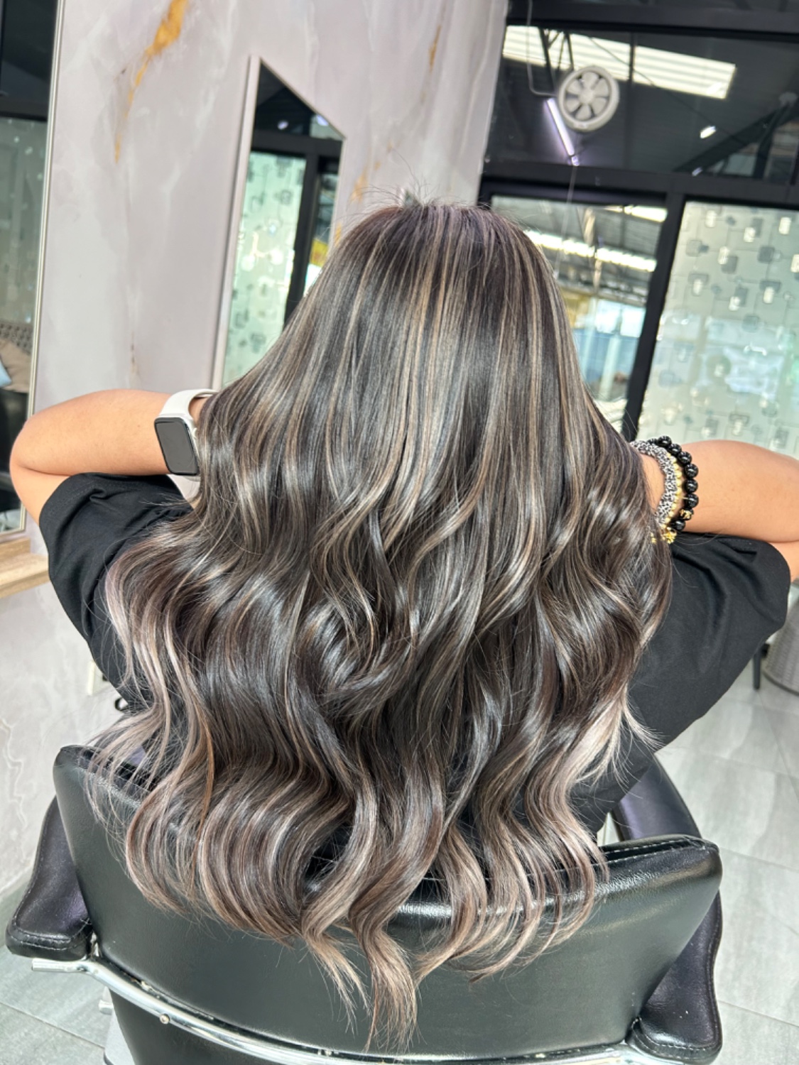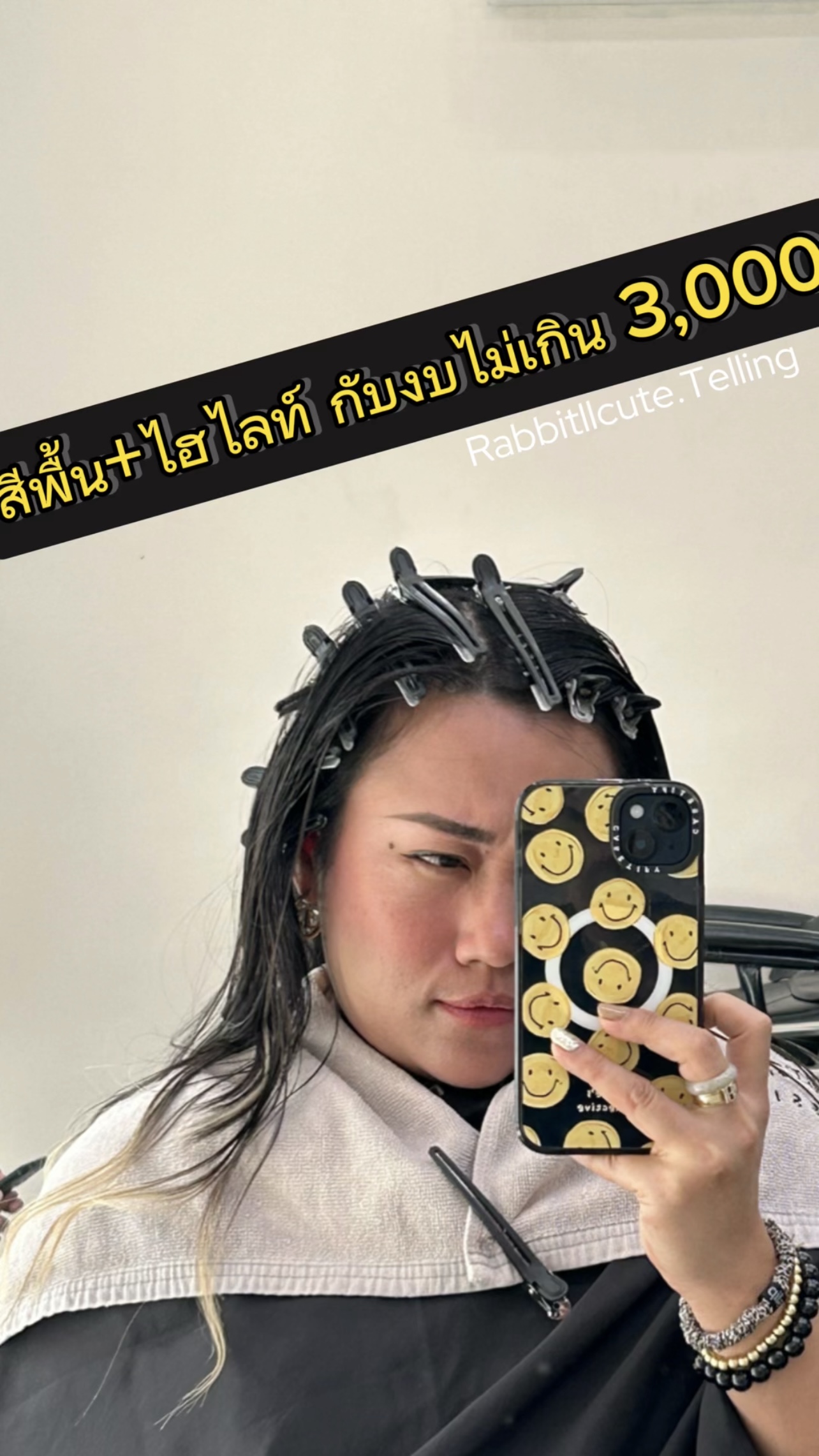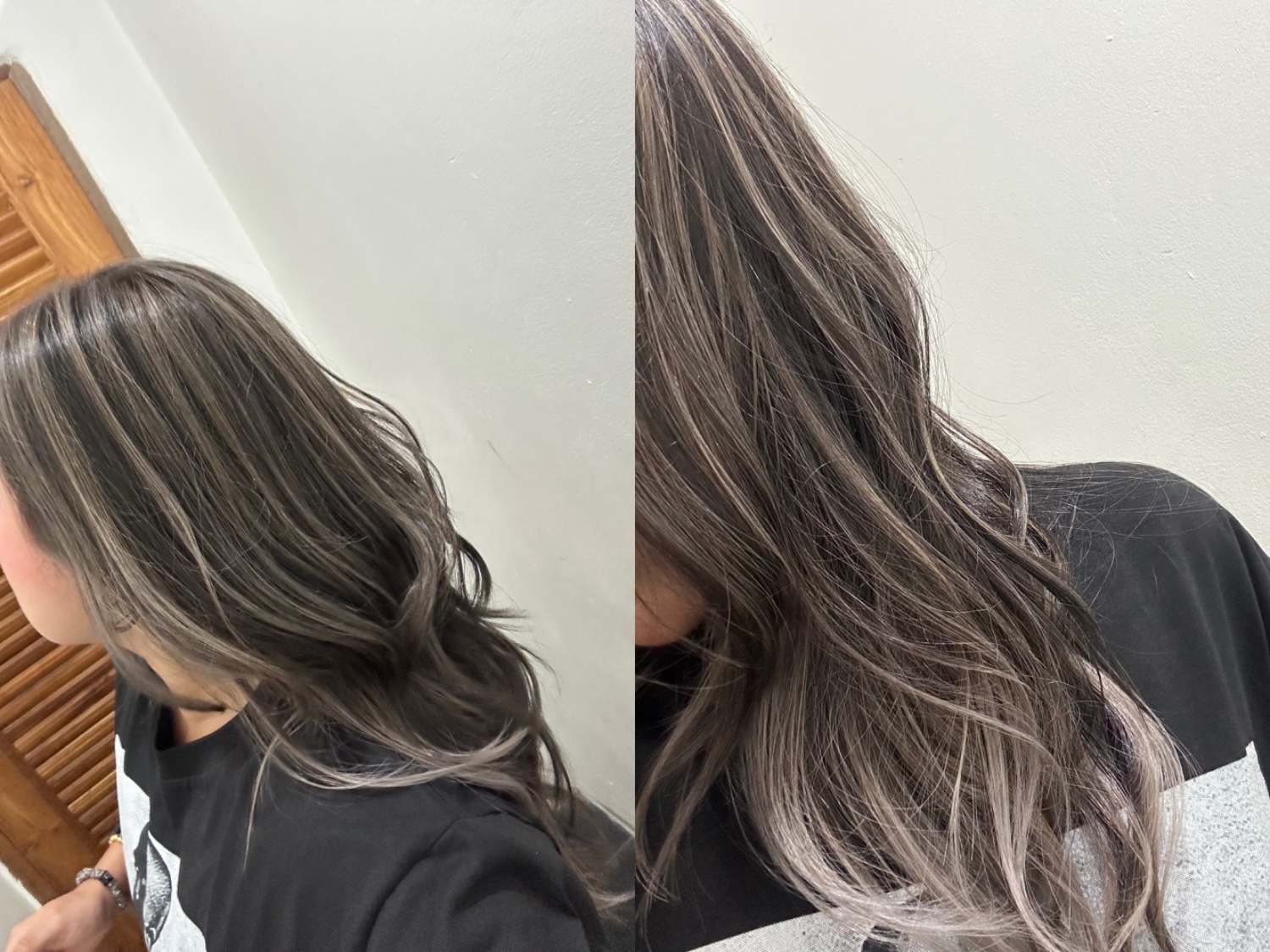 รอบนี้เลือกทำ ไฮไลท์+สีพื้น เพราะไม่อยากทำบ่อยและไม่อยากดูแลเยอะนัก โทนสีจึงเลือกไม่สว่างมาก