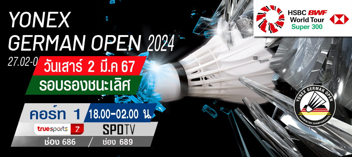 เชียร์สด ! แบดมินตัน YONEX German Open 2024 : รอบรองชนะเลิศ (2 มี.ค. 67) (คู่แรกเวลา 18.00 น.)