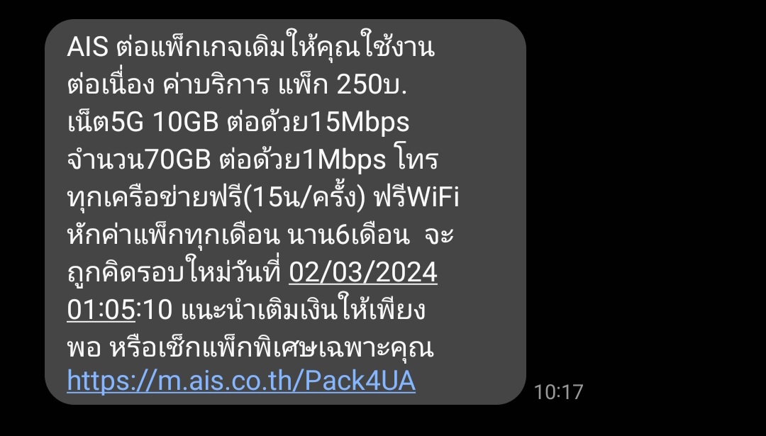 เนื่องจากแพ็กเกจเดิมที่ใช้อยู่เป็นแพ็กเกจที่ใช้มานานหลายปีแล้ว และรู้สึกโอเคกับแพ็กเกจนี้สำหรับการใช้งานของตัวเอง ทั้งเรื่อง ความเร็วเน็ต ค่าโทร และราคาต่อเดือนที่จ่ายก็โอเคดี แต่อยู่ดี ๆ ais ก็ส่ง s