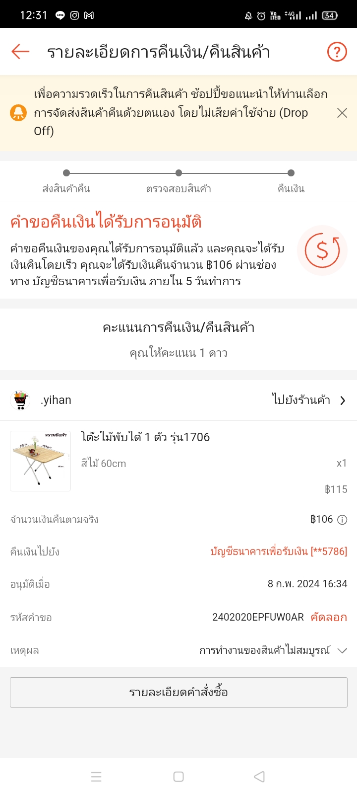 โอนเงินคืนจาก shopee ตอนนี้ยังไม่ได้เงินเลยค่ะ