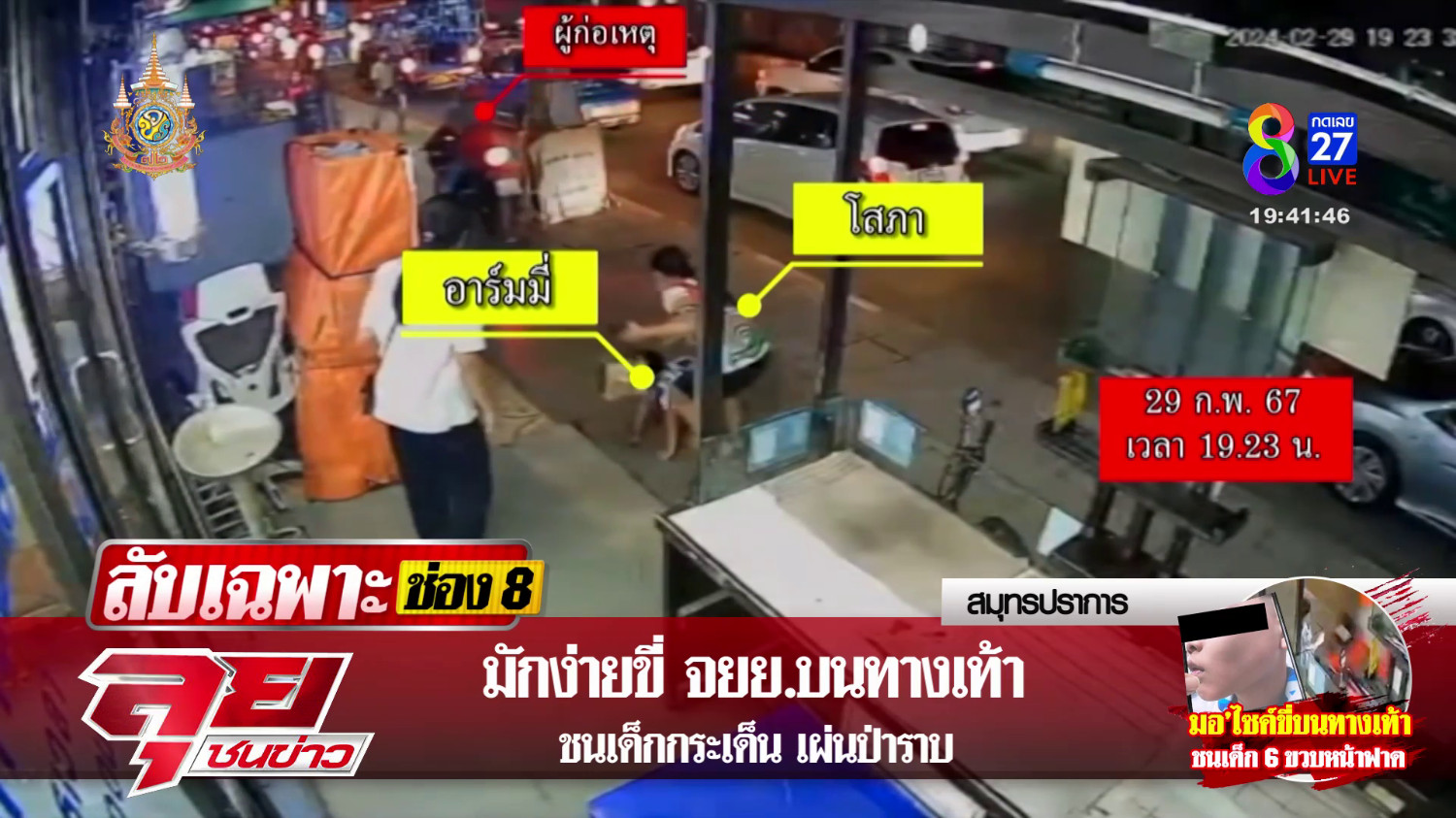 มอไซค์โคตรมักง่าย ซิ่งรถบนทางเท้าชนเด็กกระเด็น ไร้สำนึกไม่รับผิดชอบ