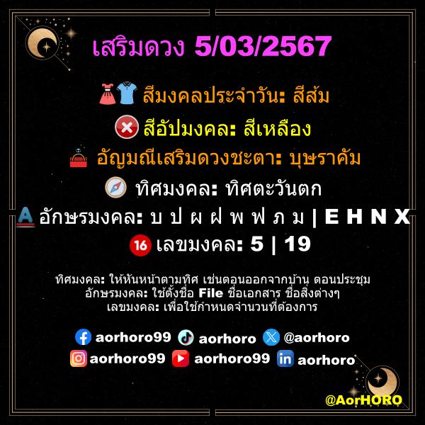 5/3/2567 ดูดวงรายวันกับ AorHORO