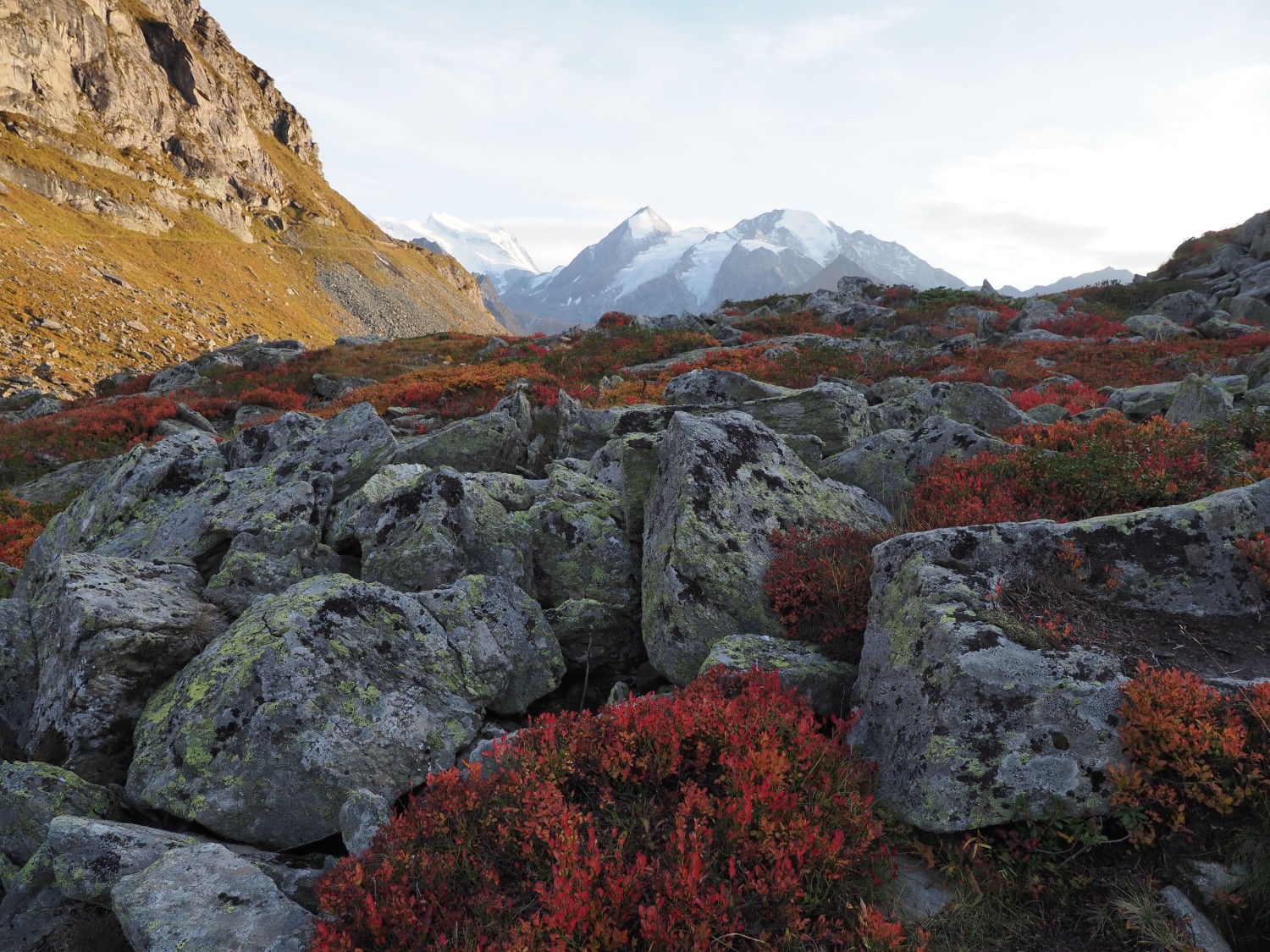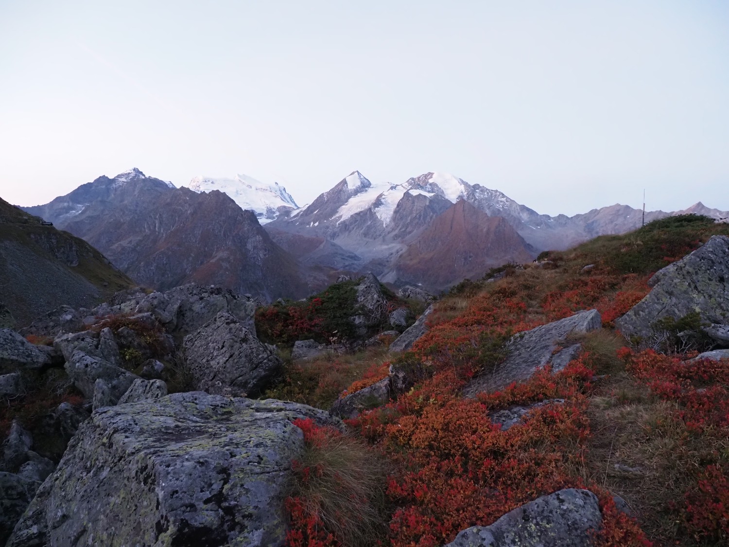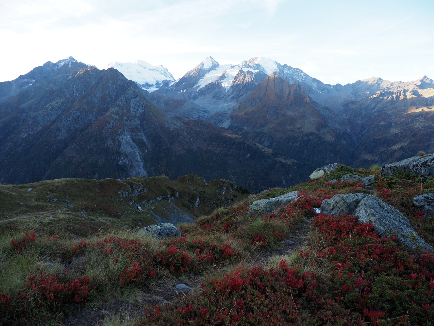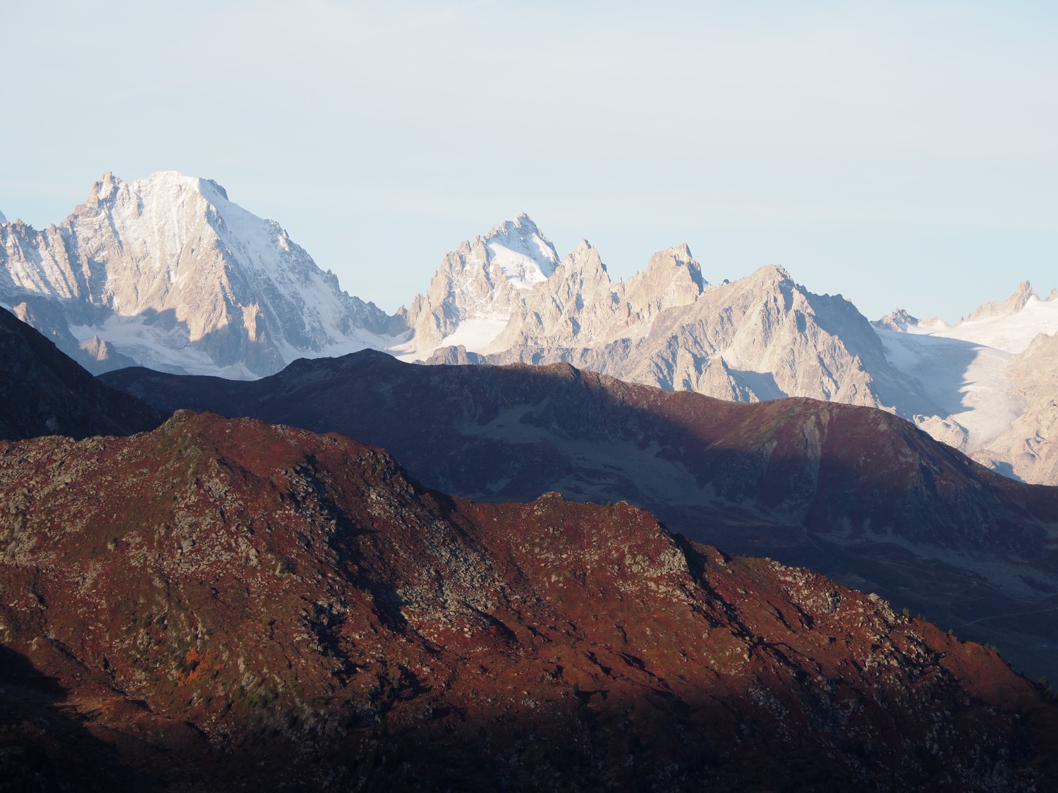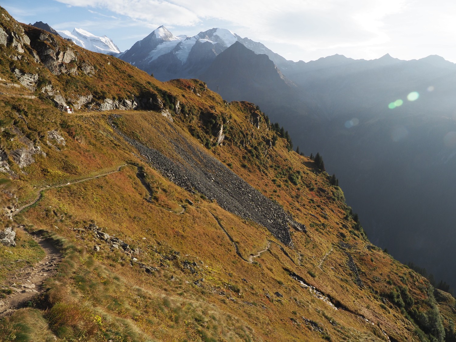 หันหลังไปมองทางที่เดินขึ้นมา เห็น Grand Combin บางส่วน