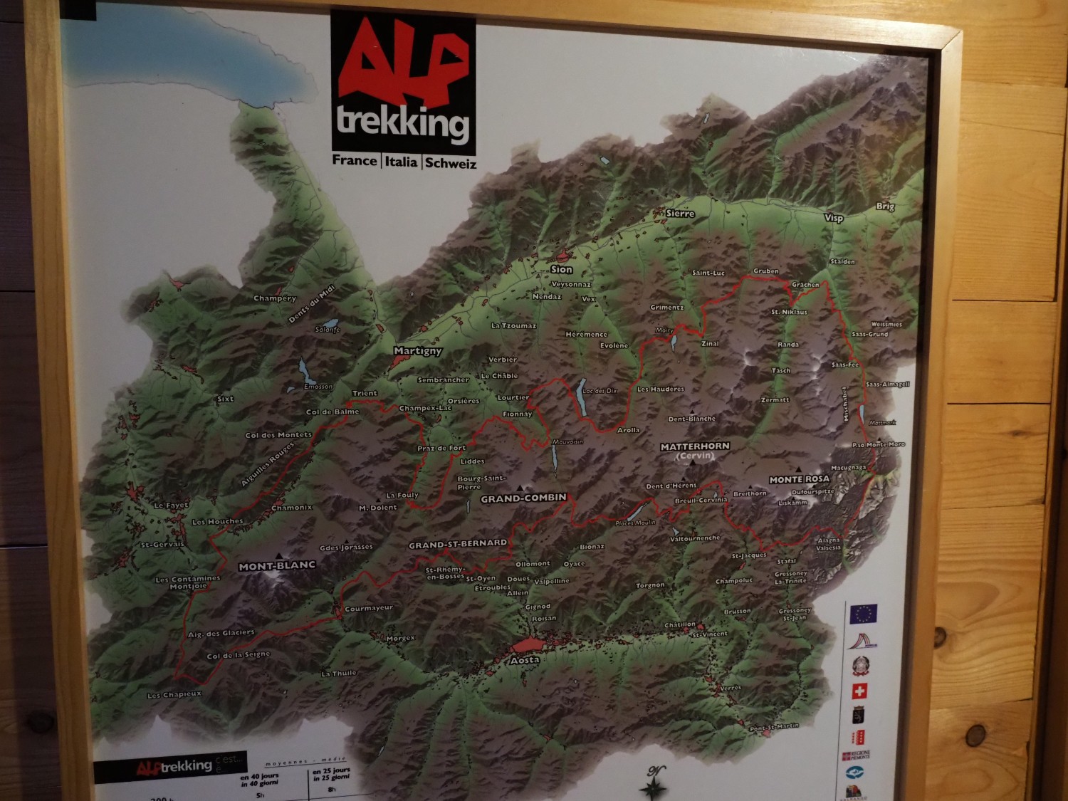 แผนที่ในโรงแรม แสดงภูเขาสำคัญบริเวณนี้ Mont-Blanc-Grand Combin-Matterhorn-Monte Rosa