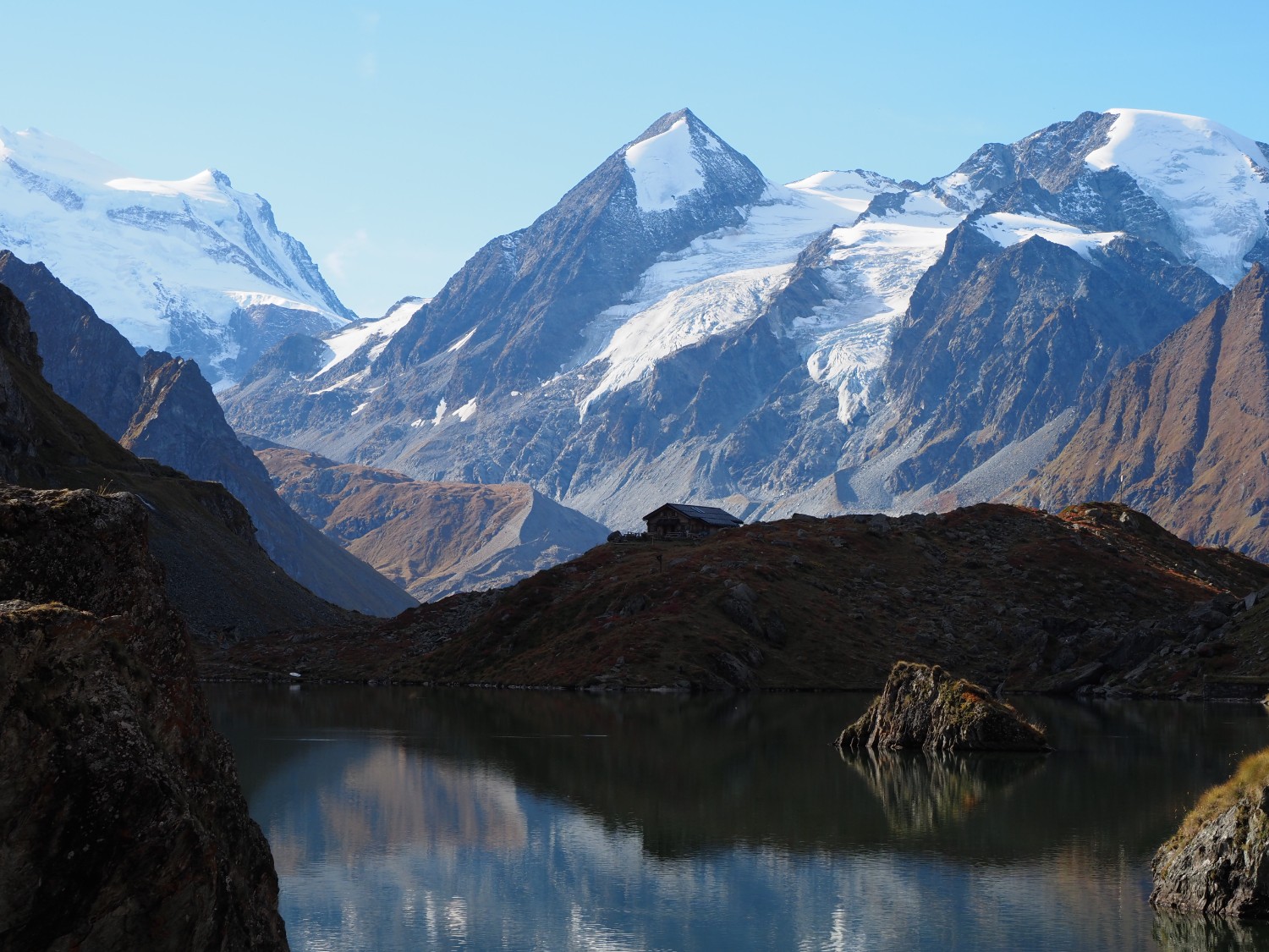 Lac de Louvie-Cabane de Louvie และ Grand Combin ด้านหลัง