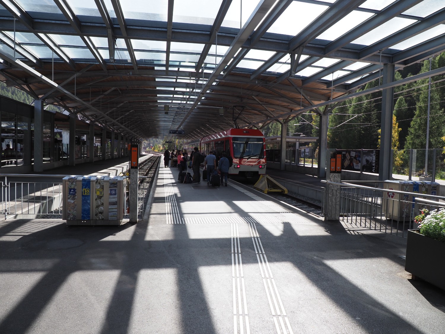 เนื่องจาก Zermatt เป็น Car-Free Village ต้องจอดรถที่ Täsch แล้วนั่งรถไฟเข้าไป