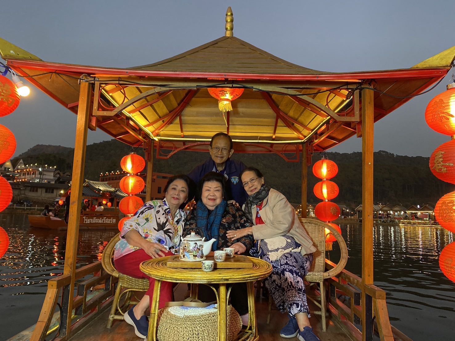 อิ่มแล้วคนแก่ก็ขึ้นห้องไปนอน เหลือแต่จอมซนคนสวย (ว่าเอง เออเอง) คือฮูหยินวัย 80 อัพ 2 คนประทับในเก๋งจีนบนเกี้ยวยนต์ (รถตุ๊กๆ) ชมวิวรอบทะเลสาบก่อนขึ้นนอน
