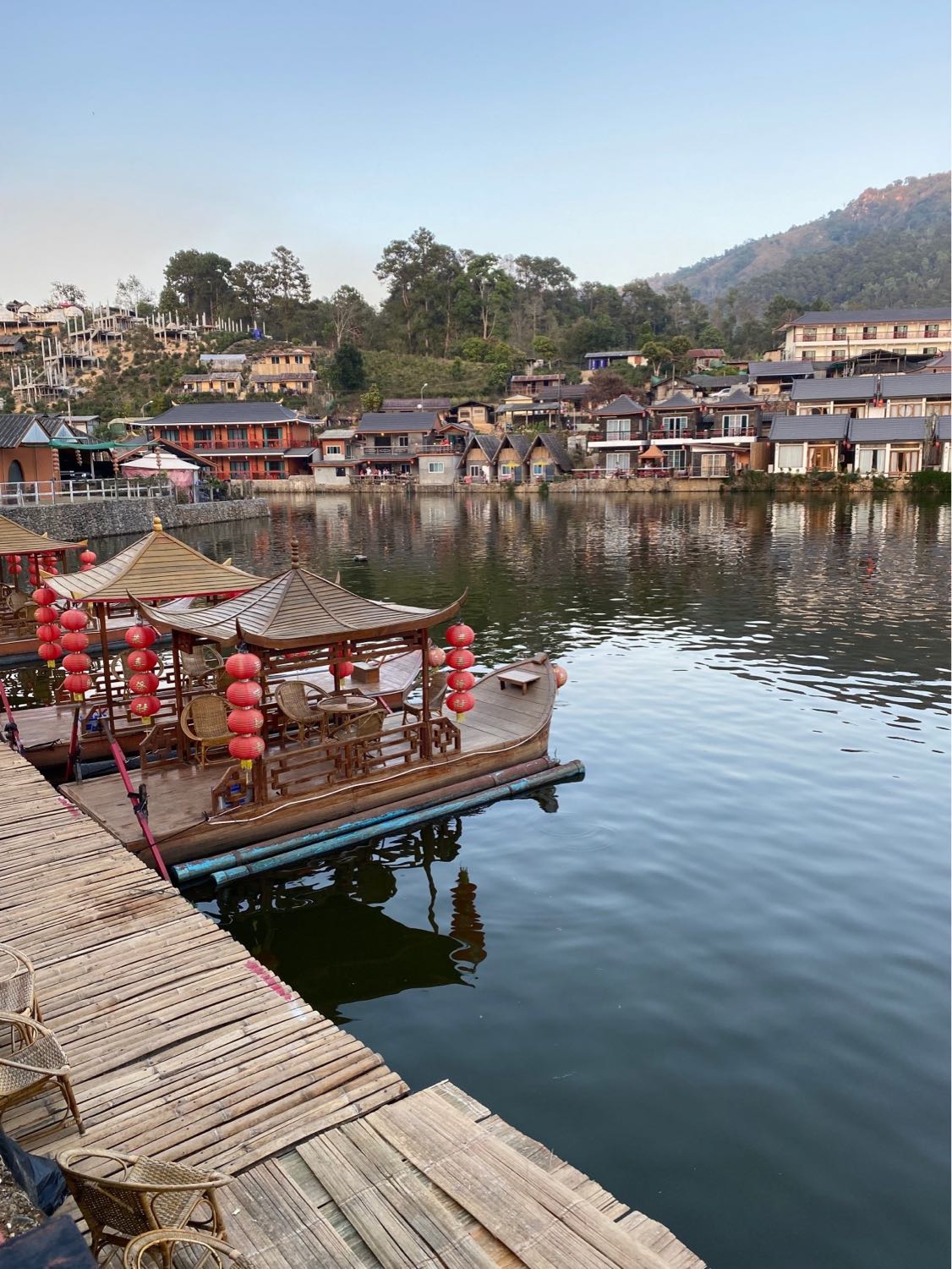 บ่ายวันนั้นเราก็ถึงดินแดน Shangrila ในฝันของฉันเสียที หรือในชื่อภาษาไทยว่าชุมชนบ้านไทยรักไทย…เอ้ยไม่ใช่ ชุมชนบ้านรักไทยเฉยๆ ของชาวไทยเชื้อสายจีนยูนนาน คือชาวจีนพลัดถิ่นนั่นแหละ จากสมัยโพ้น (ไปค้นประวัติอ่านเองเถอะ) อยู่กลางหุบเขา บ้านเรือนกระจายอยู่บนเนินเขารอบอ่างเก็บน้ำขนาดใหญ่เหมือนทะเลสาบ ทัศนียภาพงดงามมาก เหมือนหลงไปอยู่ในต่างประเทศเลย เพราะมีนักท่องเที่ยวเช่าชุดจีนเดินเตร็ดเตร่อยู่ทั่วไป