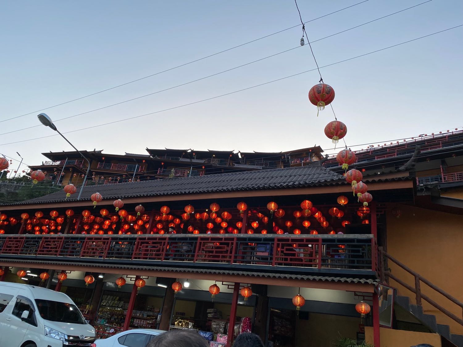 ตกดึกเราลงเรือตกแต่งแบบเก๋งจีน ลอยวนไปในสายชลแห่งอ่างเก็บน้ำ ตามไหล่เขาประดับด้วยโคมไฟสีแดงแห่งบ้านคน มีหมอกลอยบางๆ โชคดีที่เรือลำของฉันได้หนุ่มไอเดียกระฉูดเป็นฝีพาย เขามีไฟฉายแบบช่างภาพอาชีพ ถ่ายรูปให้เราพร้อมกำกับการแสดงให้ด้วย เช่น “มาม๊า หันมาทางปาป๊า ชนถ้วยชาแล้วยิ้มน้อยๆ” มาม๊าหันข้าง ทำหน้าหยิ่ง” “มาม๊า ทำท่าจิบชา” ฯลฯ เรือลำอื่นอิจฉาเราใหญ่ เพราะได้แต่นั่งทื่อถ่ายรูปกันเองด้วยท่าเกร็งๆ นั่งเรือชมทะเลสาบนี่มีรอบเช้าด้วยซึ่งจะประกอบฉากด้วยสายหมอกบางๆ แต่ฉันว่ารอบกลางคืน ‘ฟิน’ กว่านะ เพราะมีวิวโคมไฟวิบวับและเพราะไม่ได้ตื่นไปรอบเช้าไง 555!