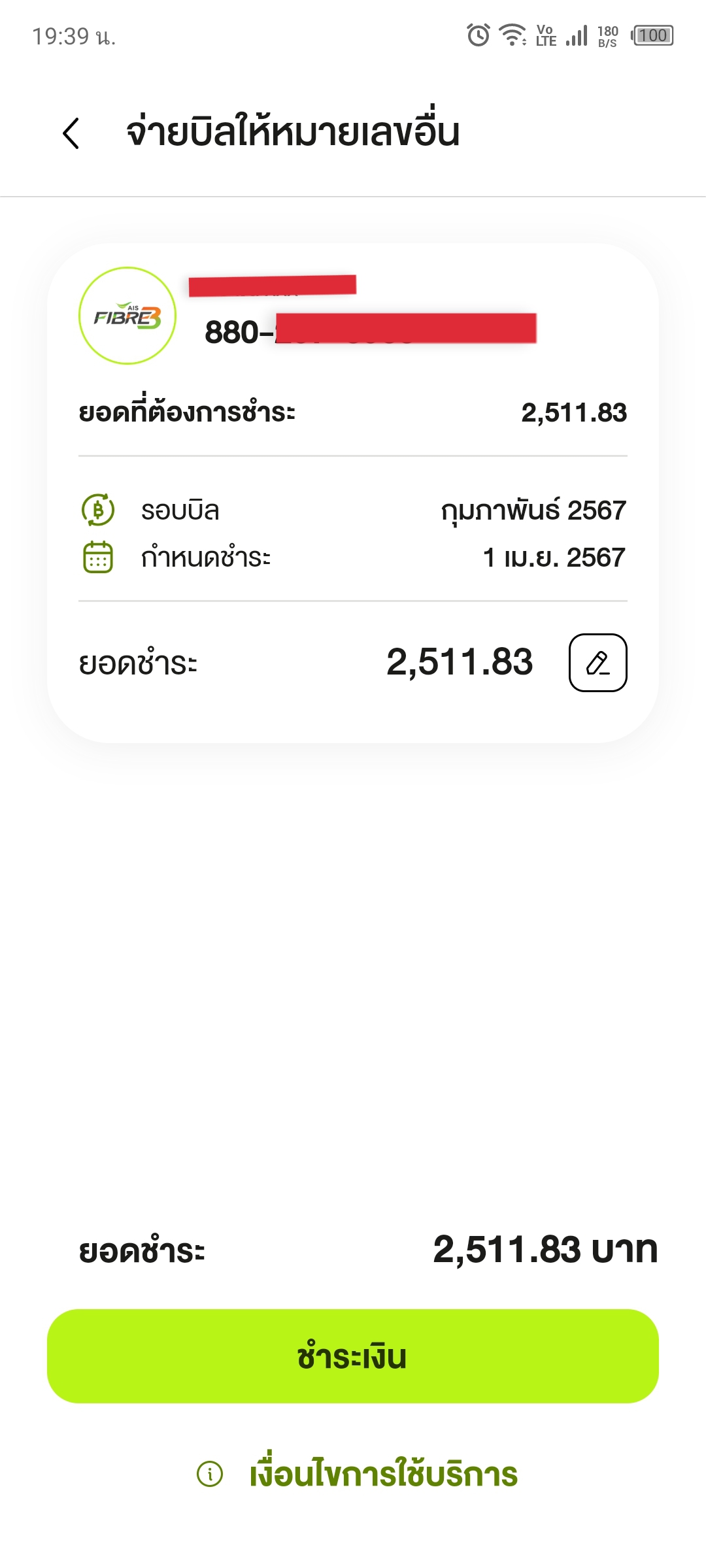 ใช้ AIS fiber ยอดขึ้งค้างชำระ