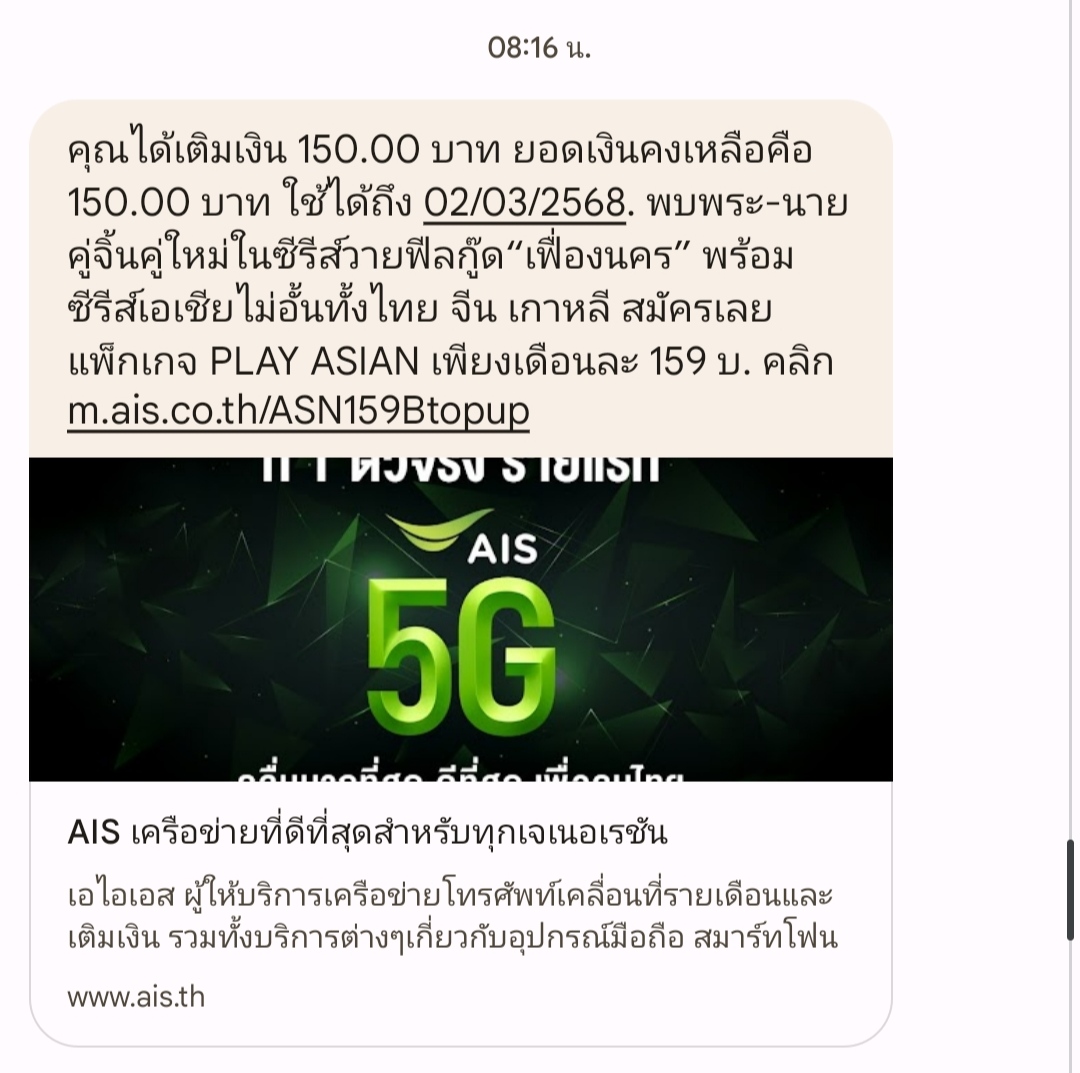 คือใช้เน็ตต่ออายุอัตโนมัติ 150฿/เดือน เติมแล้วแต่ไม่หักค่าบริการครับ