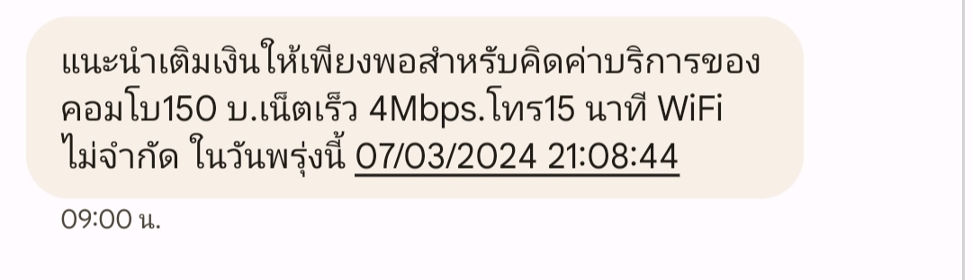ไม่สามารถตัดค่าแพ็กเกจ/บริการ แพ็ก150บ. ใช้เน็ต100GB (เร็ว4Mbps) WiFi นาน 6เดือน เพื่อใช้งานต่อเนื่อง กรุณาเติมเงินให้เพียงพอ พอดีว่าผมเติมเงินแล้วแต่ยอดไม่ตัดให้ทำไงดีครับ อยากใช้เน็ตต่อ