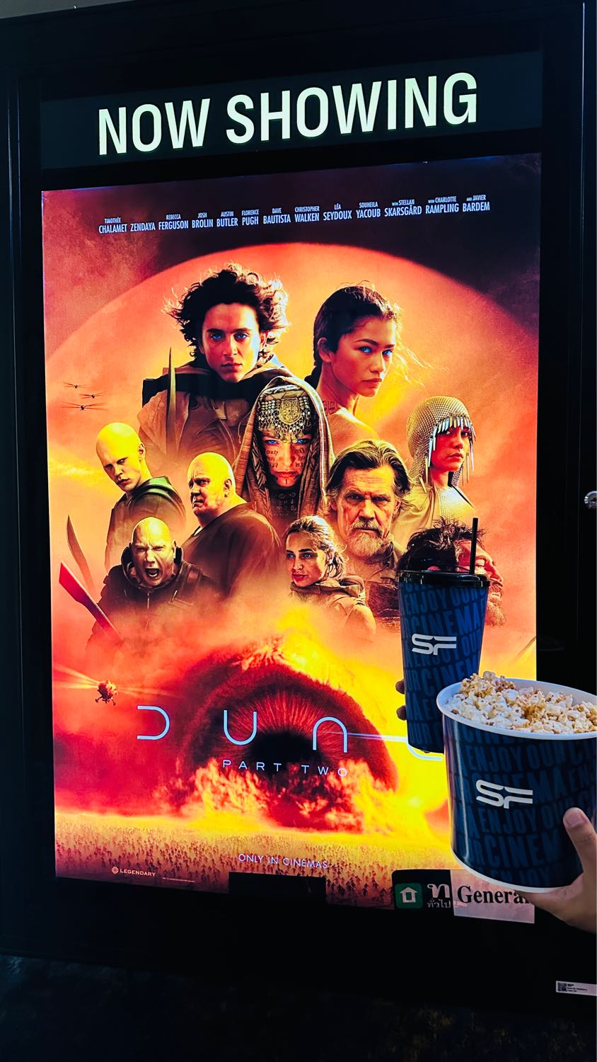 วันนี้เข้าโรงหนังครั้งแรกในรอบหลายปี ไปดูหนังเรื่องดูน ภาค 2 เพราะคิดว่าเป็นหนังที่น่าจะดูในโรงถึงจะได้อรรถรส ซึ่งก็ไม่ผิดหวังจริงๆ เดี๋ยวนี้ดูหนังในบ้านมากกว่าสะดวก ประหยัด และเบื่อเดินทาง