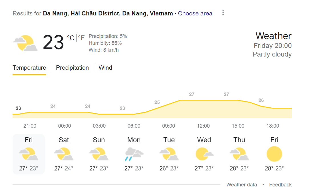 อากาศยังไม่ร้อนเท่าไหร่น่ะครับ ดานัง เดือนมีนาคม ต่ำสุด 23 สูงสุด 27 สูงสุดของวัน ยังต่ำกว่า อุณหภูมิต่ำสุดของกรุงเทพอีก