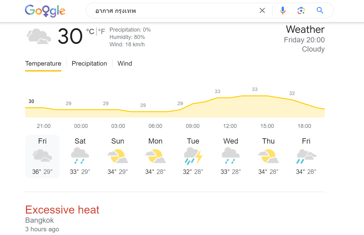 ในขณะที่กรุงเทพ ต่ำสุด 29 สูงสุด 36