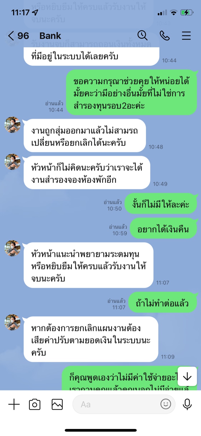 สวัสดีค่ะ สอบถามพี่ๆหน่อยค่ะ คือหนูไปทำงานออนไลน์งานนึงเป็นงานฟังเพลง พอติดต่อไปเขาส่งรายละเอียดให้เรียบร้อย แจ้งว่ามีค่าประกัน100บาทให้โอนค่าปนะกันมาแล้วจะเริ่มทำงานเงินจะถอนพร้อมค่าประกัน พอโอนไปแจ้