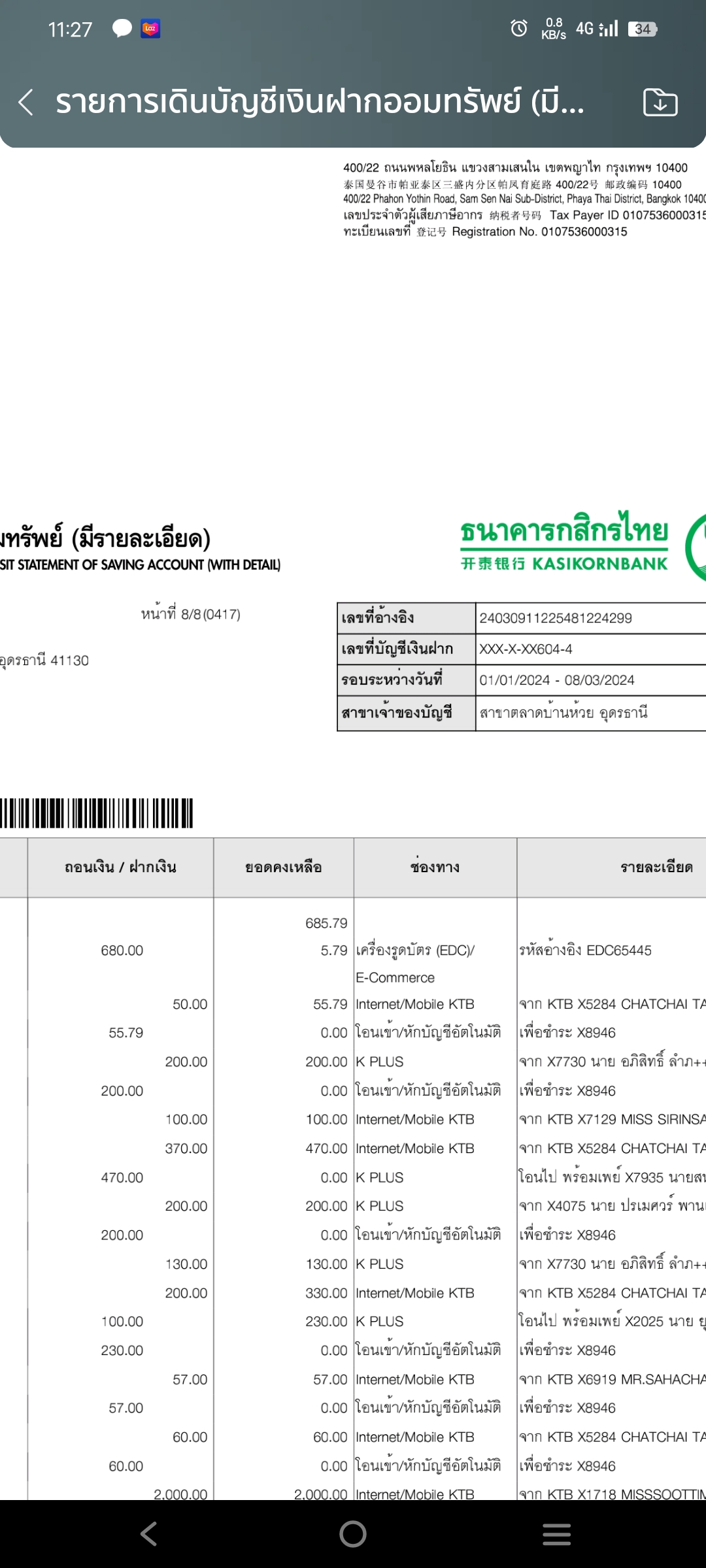 บางทีก็เป็นรหัสอ่างอิงอื่นแต่โดนทุกเดือน 600 บ้าง 200 บ้าง
