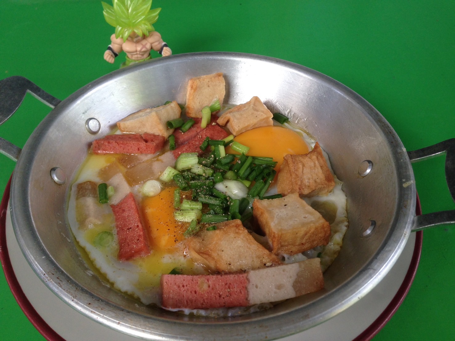 วันนี้วันพระ ทำไข่กระทะแบบมังฯ ใช้เต้าหู้ปลาเจ หมูสามชั้นเจ ซื้อจากตลาดเยาวราช ร้านนี้มีของเจขายทั้งปี ร้านจะแช่แข็งไว้