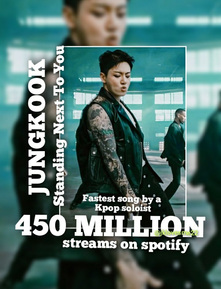 นอกจากนี้เพลง Standing Next to You ยังมียอดสตรีมทะลุ 450M บน Spotify เป็นเพลงที่สามของจองกุกที่ทำได้ และเป็นศิลปินเดี่ยว K-POP ที่มีเพลงถึง 450M streams มากที่สุด